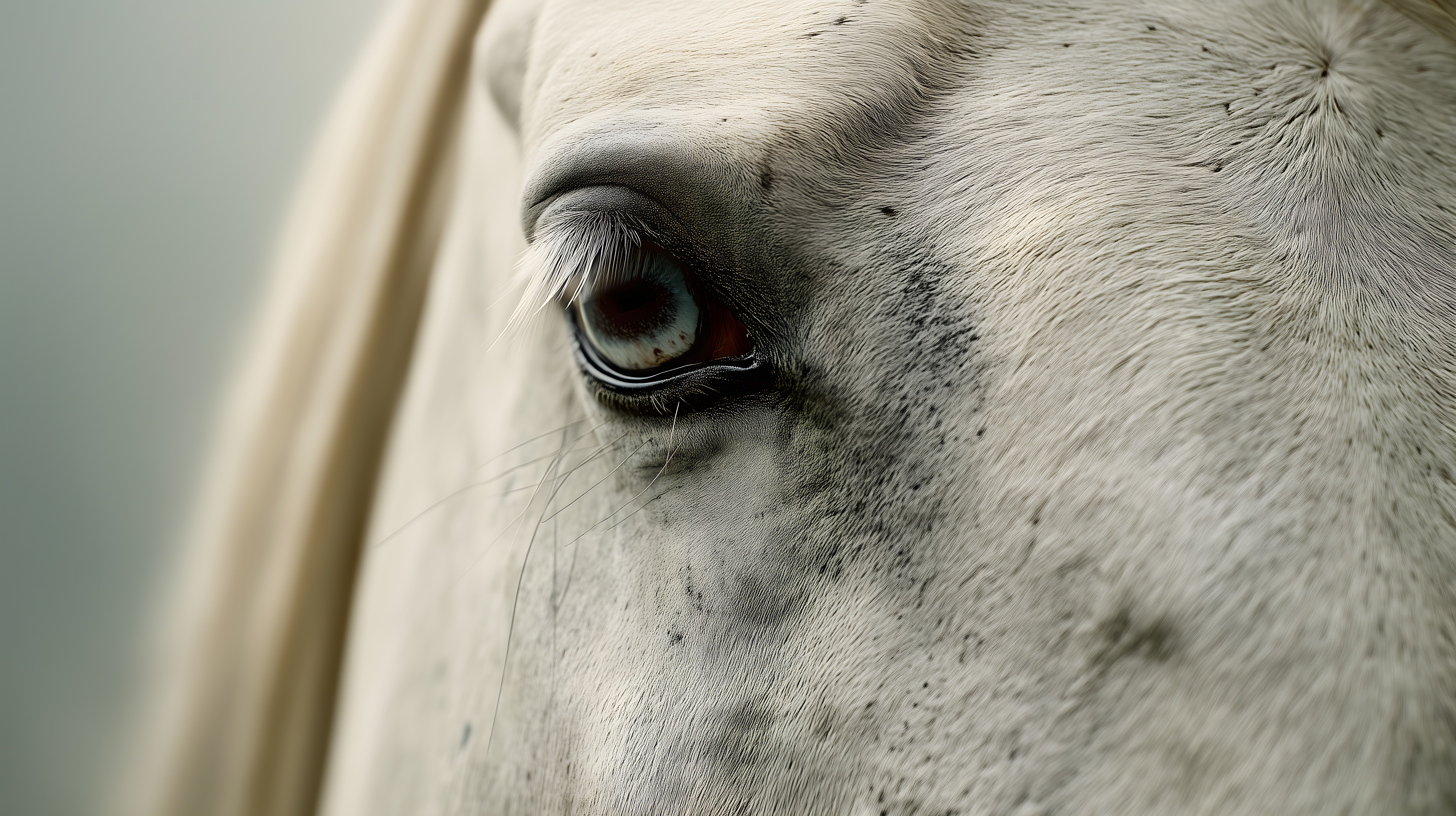 Das Bild zeigt eine äußerst detaillierte und nahaufgenommene Aufnahme eines Pferdeauges. Der Fokus liegt klar auf der Iris und Pupille, die in natürlicher Schärfe abgebildet sind. Der Hintergrund ist stark unscharf, wodurch der Blick des Betrachters ganz auf das Auge gelenkt wird. Durch den Kontrast zwischen dem dunklen Pupillenbereich und der helleren Iris entsteht eine ausgewogene Komposition. Das Foto eignet sich hervorragend als Stockfoto für Beiträge über Tiere, Natur oder Fotografie in Blogs, Newslettern oder Social-Media-Kanälen. Es ist in hoher Auflösung und unter einer Creative-Commons-Lizenz verfügbar.
