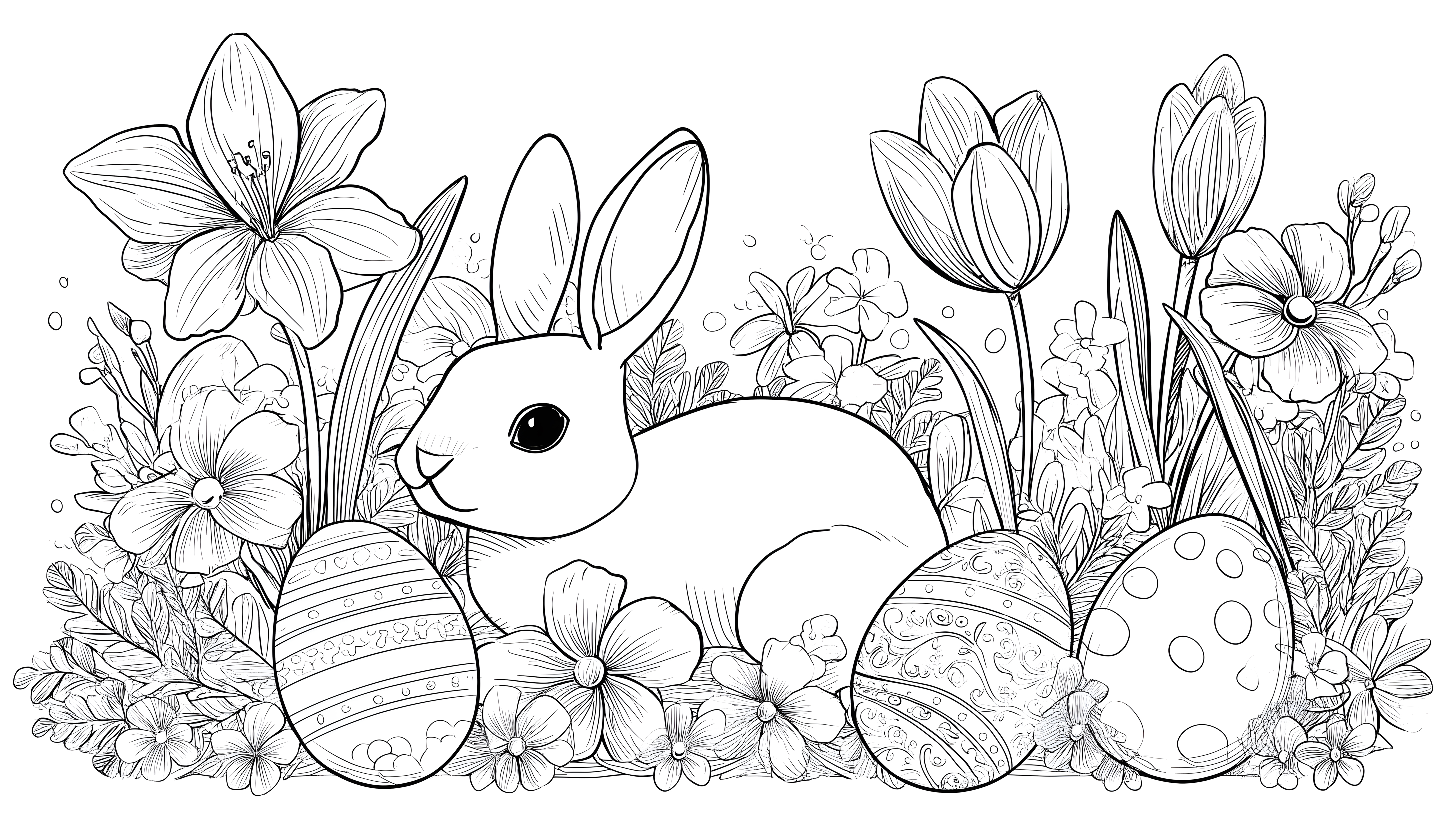 Das Bild zeigt eine liebevolle Illustration mit einem niedlichen Osterhasen umgeben von bunten Frühlingsblumen wie Tulpen und Narzissen. In der Mitte des Bildes ist der Hase in einer natürlichen, detaillierten Zeichnung dargestellt, während um ihn herum verschiedene dekorativ gestaltete Ostereier platziert sind. Die Szene strahlt eine heitere, märchenhafte Atmosphäre aus und lädt dazu ein, den Frühling und die Osterzeit zu genießen. Dieses kostenlose Stockfoto in hoher Auflösung lässt sich hervorragend für Blogbeiträge, Newsletter oder Social-Media-Posts rund um Ostern verwenden und steht unter einer Creative-Commons-Lizenz zur Verfügung.