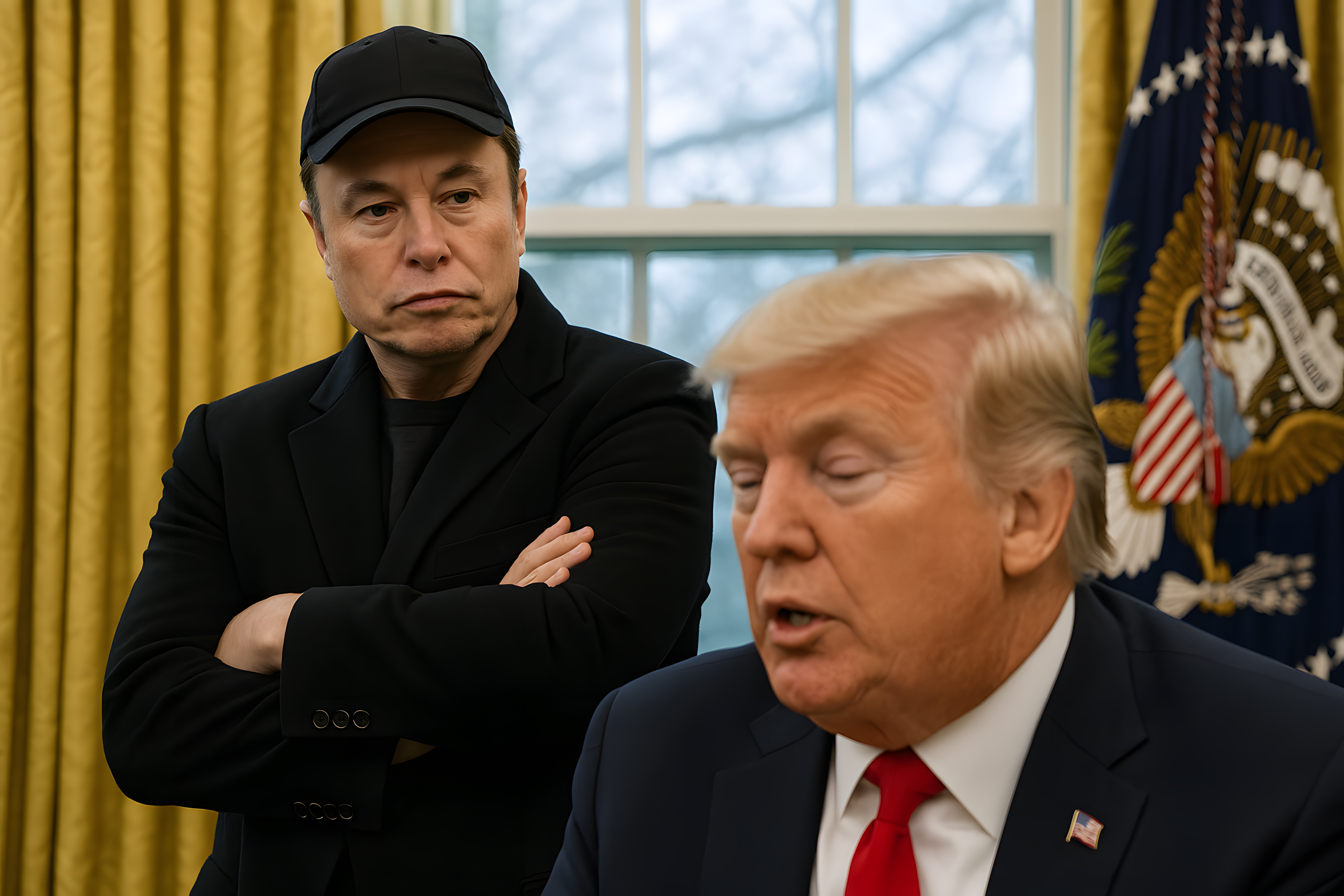 Das Bild zeigt zwei einflussreiche Männer, die im Oval Office des Weißen Hauses in Diskussion vertieft sind. Im Vordergrund sitzt der ehemalige US-Präsident Donald Trump, der sich mit verschränkten Armen und einem bestimmten Gesichtsausdruck zeigt. Hinter ihm steht der Unternehmer Elon Musk, der ebenfalls die Arme vor der Brust verschränkt hat und konzentriert auf das Gespräch blickt. Im Hintergrund sind die typischen Fenster und die amerikanische Flagge im Oval Office zu sehen, die den offiziellen Charakter des Raums unterstreichen. Dieses Foto bietet viel Potenzial für Anwendungen in Wirtschaftsberichten, politischen Artikeln oder Hintergründen zu Unternehmensentscheidungen. Als hochwertiges, kostenloses Stockfoto in hoher Auflösung und unter einer Creative-Commons-Lizenz eignet es sich bestens für verschiedenste redaktionelle oder kommerzielle Zwecke.