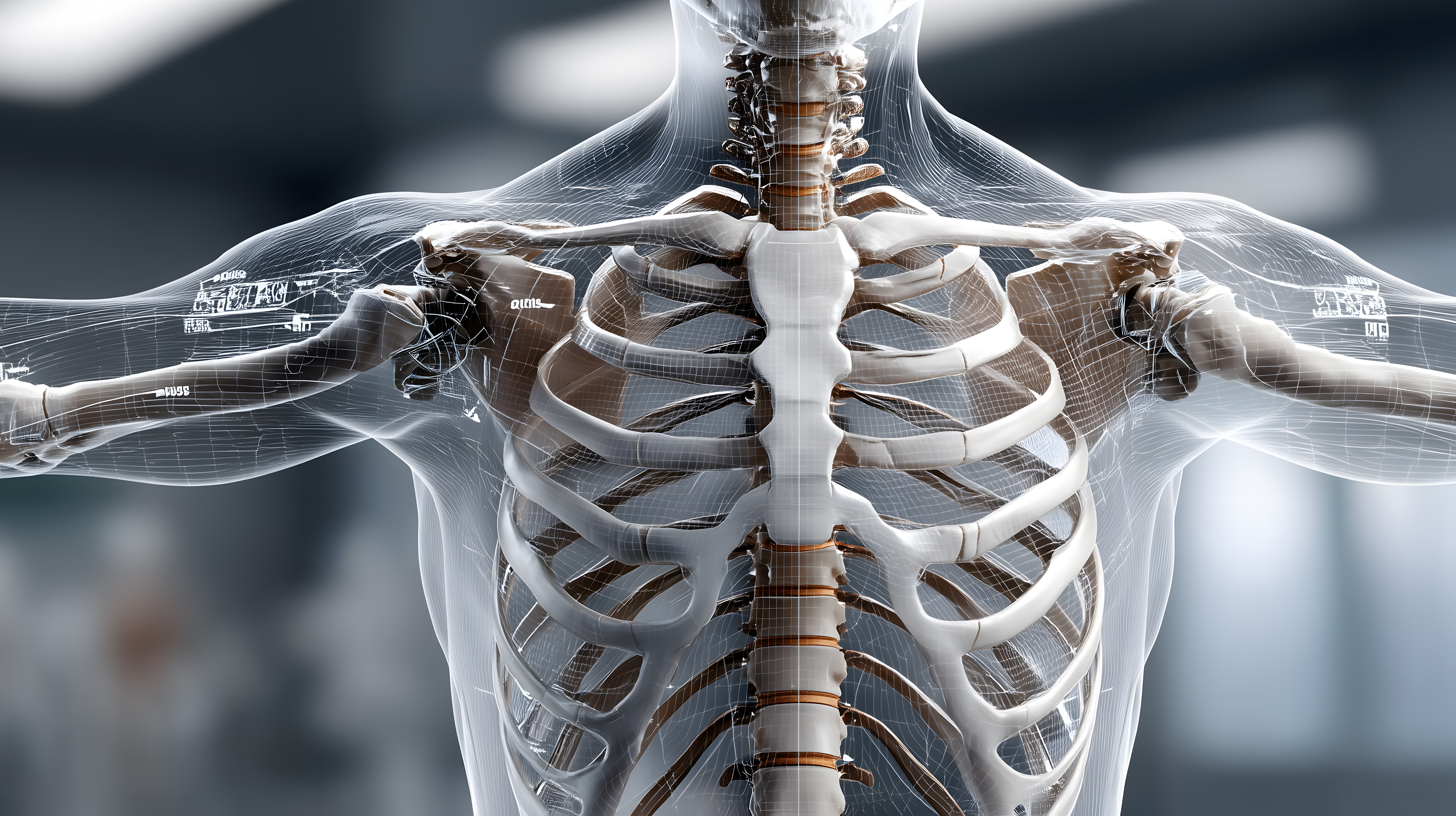 Dieses Foto zeigt ein detailliertes digitales 3D-Modell des menschlichen Skeletts mit einer medizinischen Überlagerung, die eine realistisch wirkende Röntgenaufnahme-Optik erzeugt. Die Knochen sind klar erkennbar und in hoher Auflösung dargestellt, was eine präzise anatomische Visualisierung ermöglicht. Dieses Bild eignet sich hervorragend für den Einsatz in medizinischen, wissenschaftlichen oder Bildungskontexten, z.B. für Websites, Präsentationen, Veröffentlichungen oder Werbematerialien. Es steht als kostenloses Stockfoto unter der Creative-Commons-Lizenz zur Verfügung.