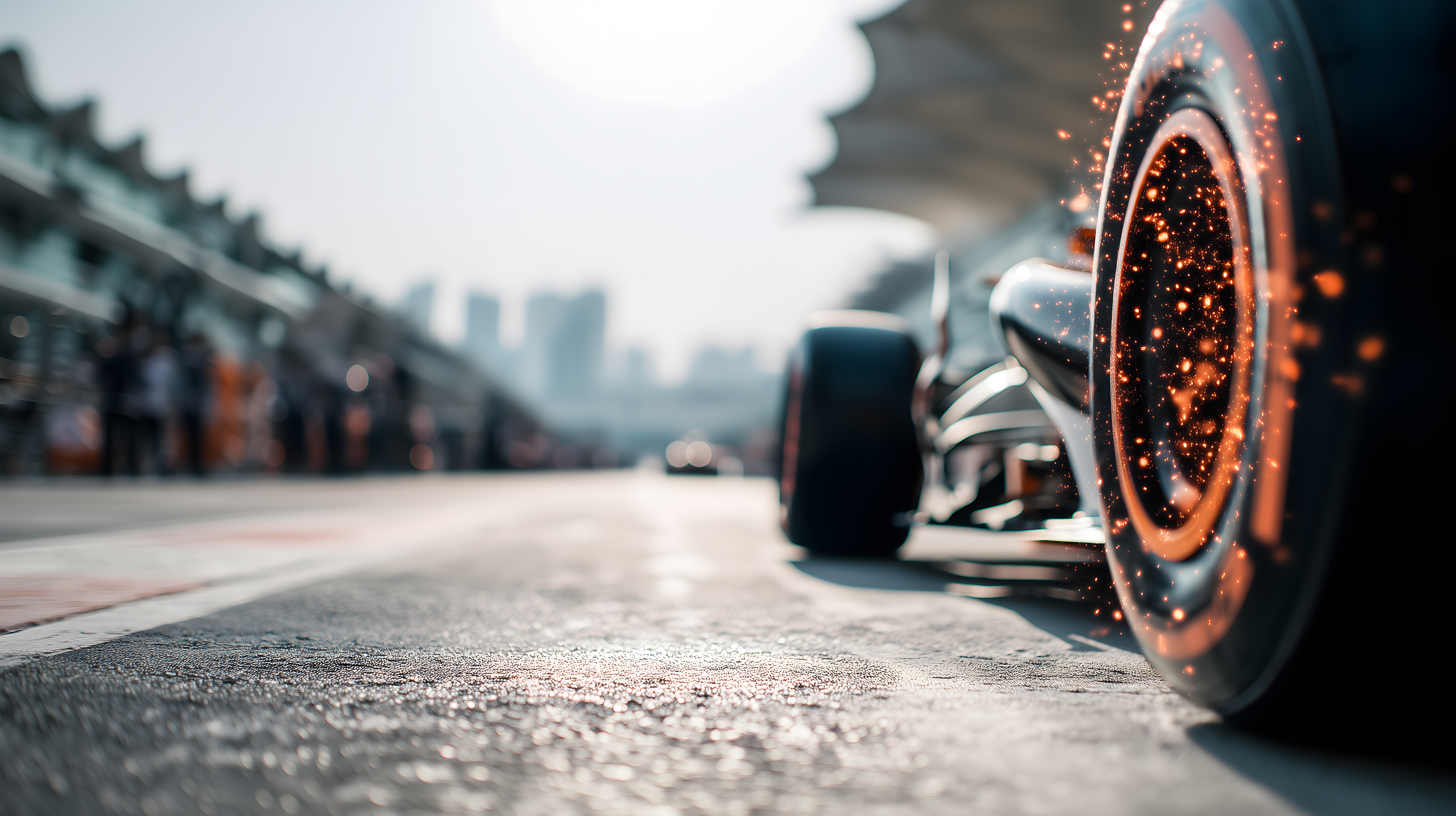 Das Bild zeigt ein Formel-1-Auto bei hoher Geschwindigkeit auf einer Rennstrecke. Das Fahrzeug hinterlässt eine Spur von Funken, die im Sonnenlicht zu sehen sind. Die dynamische Perspektive und die Schärfentiefe konzentrieren den Fokus auf das Rennautound vermitteln den Eindruck von Spannung und Adrenalin. Dieses Stockfoto in hoher Auflösung eignet sich hervorragend für Grafiken, Werbung und Marketingmaterial rund um den Motorsport, Rennevents oder für technologieorientierte Publikationen. Das Bild steht unter einer Creative-Commons-Lizenz zum kostenlosen Download zur Verfügung.