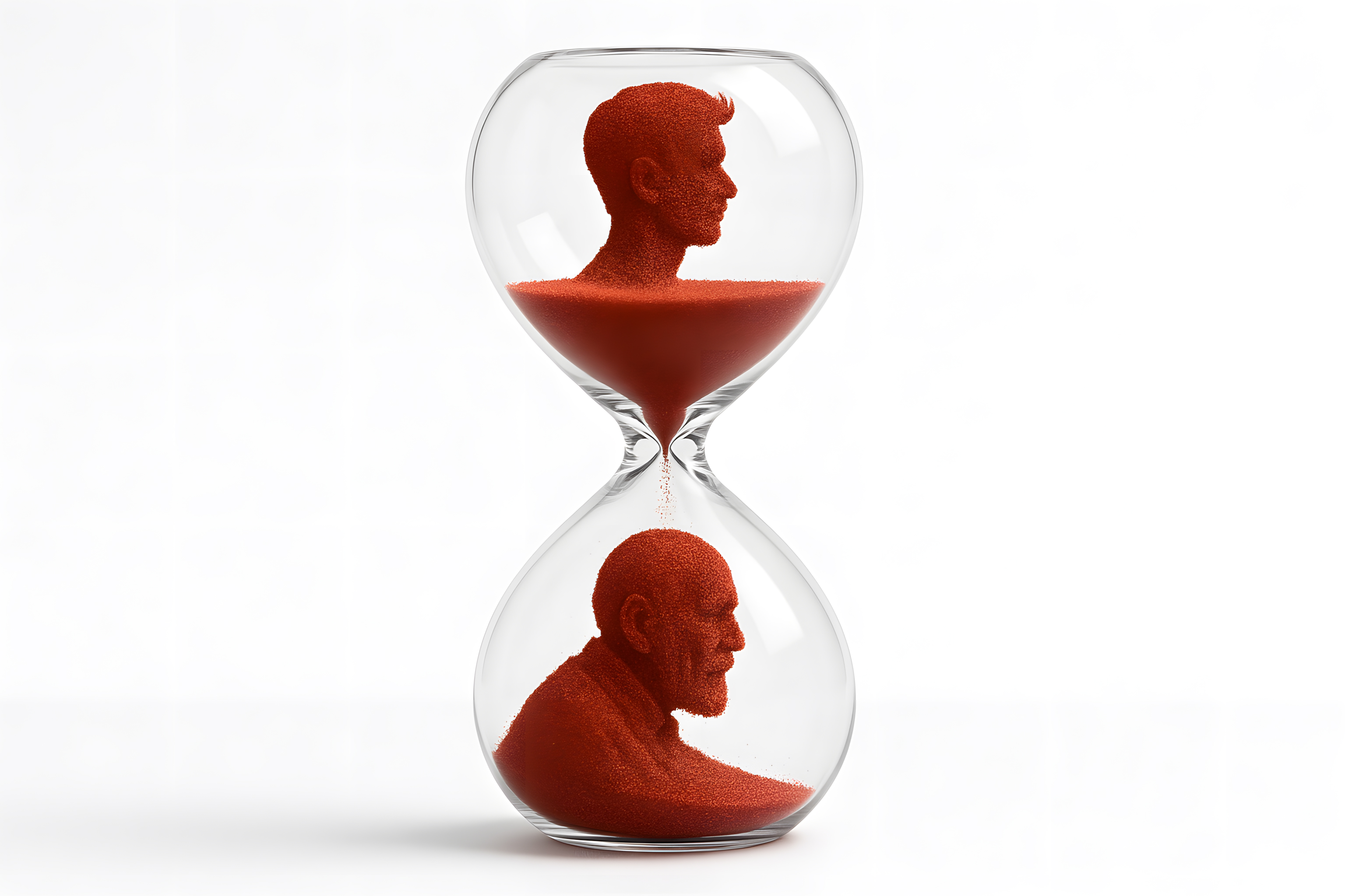 Dieses Konzeptfoto zeigt eine Sanduhr, in der sich die Silhouetten zweier Menschen befinden. Die rote Farbgebung vermittelt eine symbolische Darstellung des Lebenswegs von der Jugend bis zum Alter. Die Sanduhr als visuelles Symbol für den Verlauf der Zeit veranschaulicht, wie der Mensch im Lauf seines Lebens an Erfahrung und Reife gewinnt. Das Bild bietet sich für Anwendungen in Bereichen wie Werbung, Grafikdesign oder Zeitmanagement-Themen an. Als hochwertiges, kostenloses Stockfoto in hoher Auflösung und unter Creative-Commons-Lizenz kann es vielfältig eingesetzt werden.