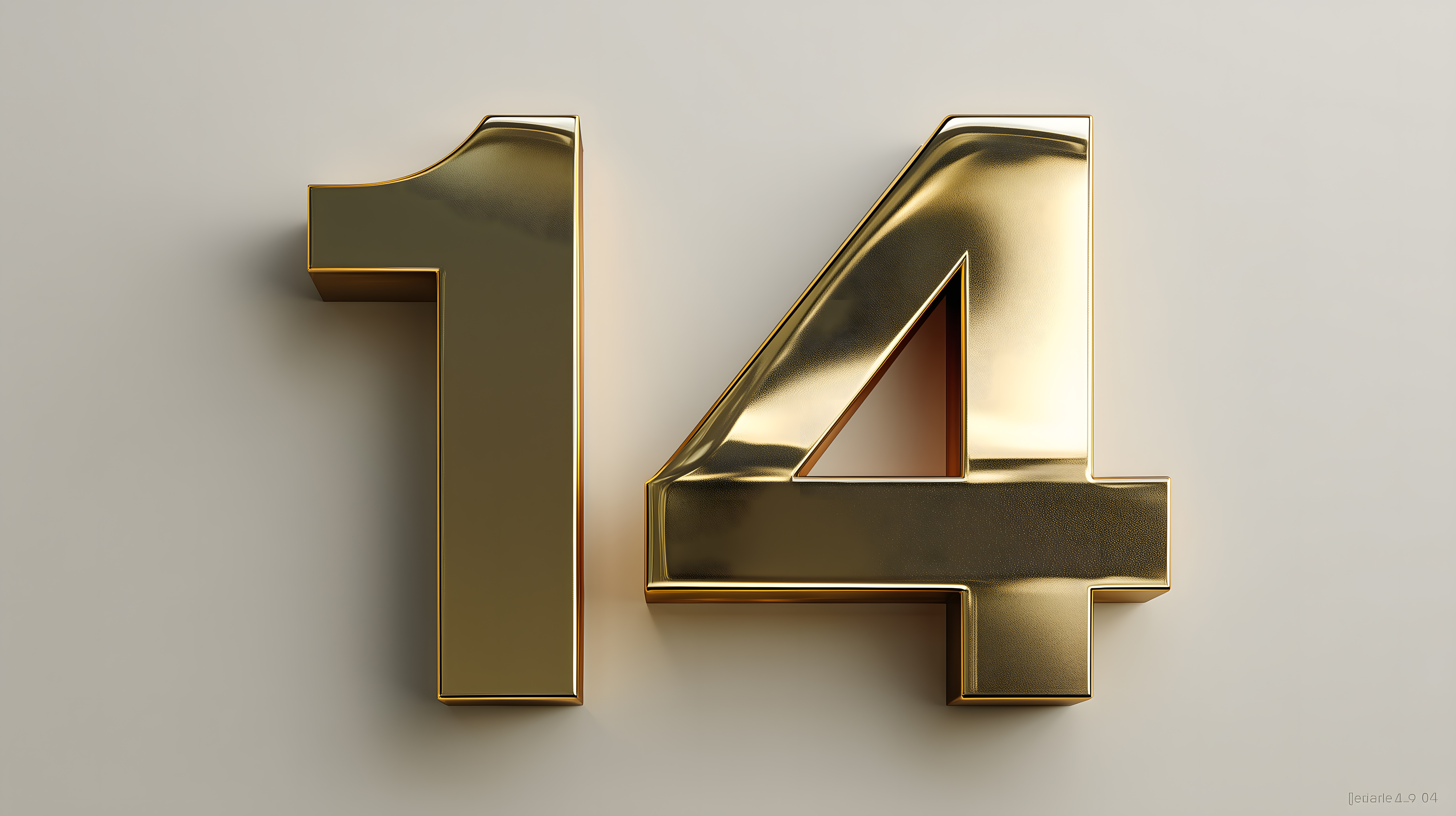 Dieses Stockfoto zeigt eine moderne, minimalistische Darstellung der Zahl 14 in goldenem Metall auf einer hellen Oberfläche. Die Ziffern sind sauber und elegant gestaltet, mit scharfen Kanten und einer glänzenden Optik, die einen hochwertigen, luxuriösen Eindruck vermittelt. Das Bild eignet sich hervorragend für den Einsatz in Blogs, Newslettern, Social-Media-Posts oder Werbematerialien, in denen eine klare, moderne und ansprechende Gestaltung gefragt ist. Als kostenloses Stockfoto in hoher Auflösung und unter Creative-Commons-Lizenz ist es vielseitig einsetzbar.