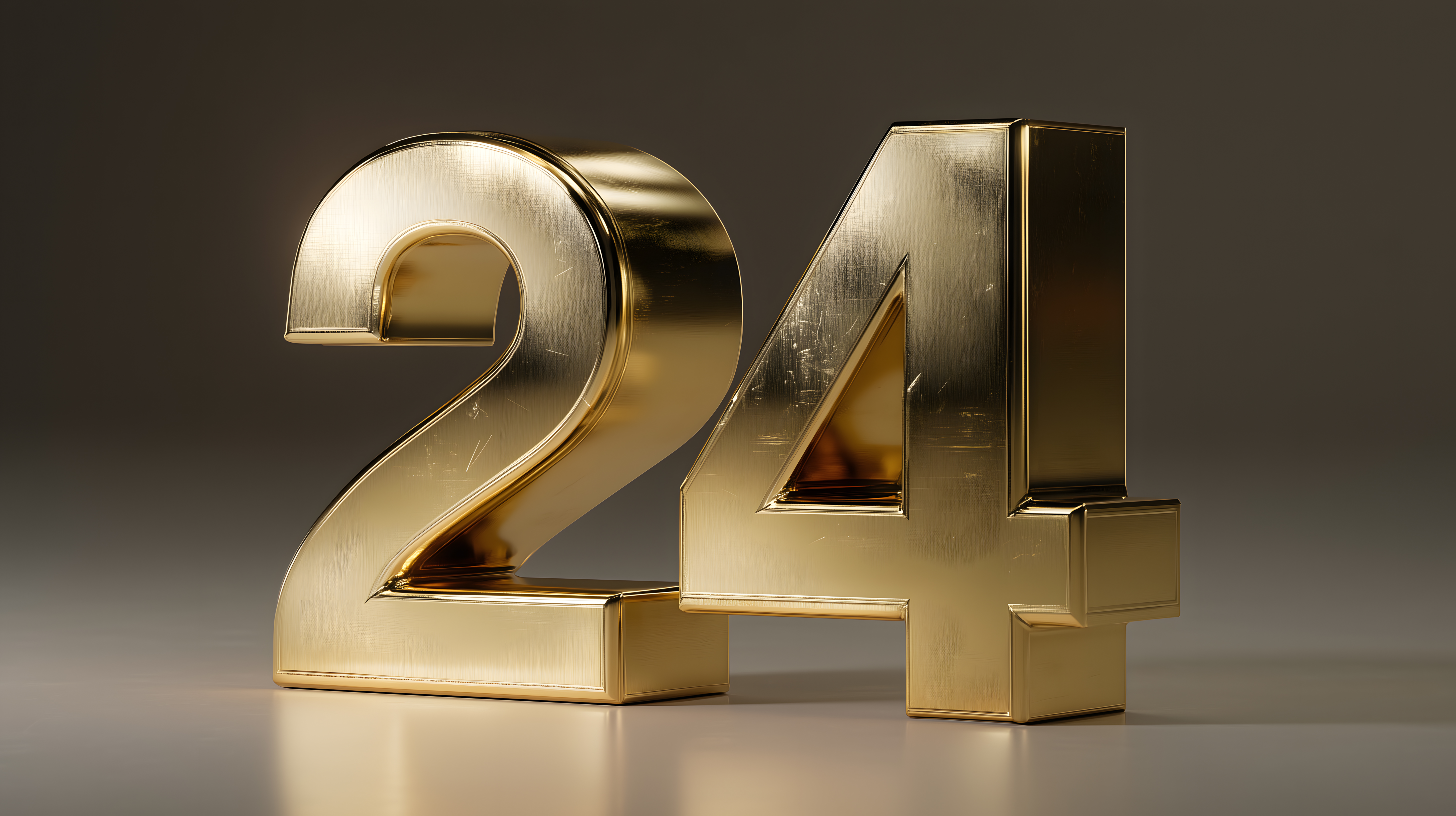 Dieses Bild zeigt die Zahl 24 in einer luxuriösen, goldenen Optik auf einem dunklen Hintergrund. Die Zahl ist detailliert und realistisch dargestellt, was einen edlen und hochwertigen Eindruck vermittelt. Diese Aufnahme eignet sich hervorragend als Stockfoto für verschiedene Einsatzzwecke wie Werbung, Newsletter, Blogs oder Social-Media-Posts, bei denen eine exklusive, stilvolle Optik gewünscht ist. Das Bild ist in hoher Auflösung verfügbar und steht unter einer Creative-Commons-Lizenz, sodass es kostenfrei verwendet werden kann.