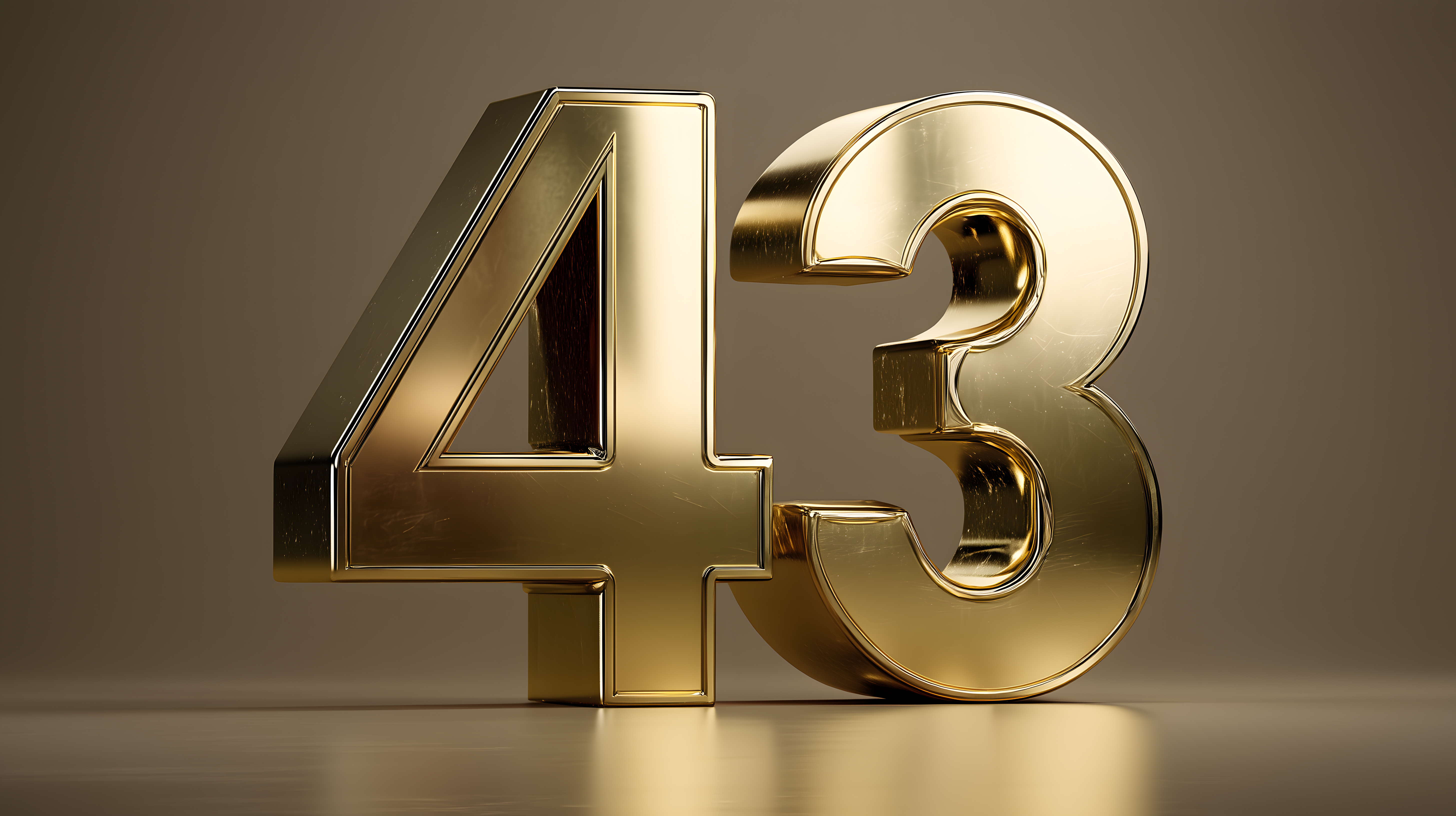 Dieses hochwertige Stockfoto zeigt eine eindrucksvolle 3D-Darstellung der Zahlen 43 in einem eleganten Goldton. Die glänzende, luxuriöse Optik der Ziffern vermittelt einen Eindruck von Exklusivität und Hochwertigkeit. Diese Grafik eignet sich ideal für die Verwendung in Werbung, Marketing oder Designprojekten, die einen modernen, stilvollen Look anstreben - zum Beispiel für Einladungen, Präsentationen oder Social-Media-Beiträge. Das Bild ist in hoher Auflösung verfügbar und unter einer Creative-Commons-Lizenz frei nutzbar.