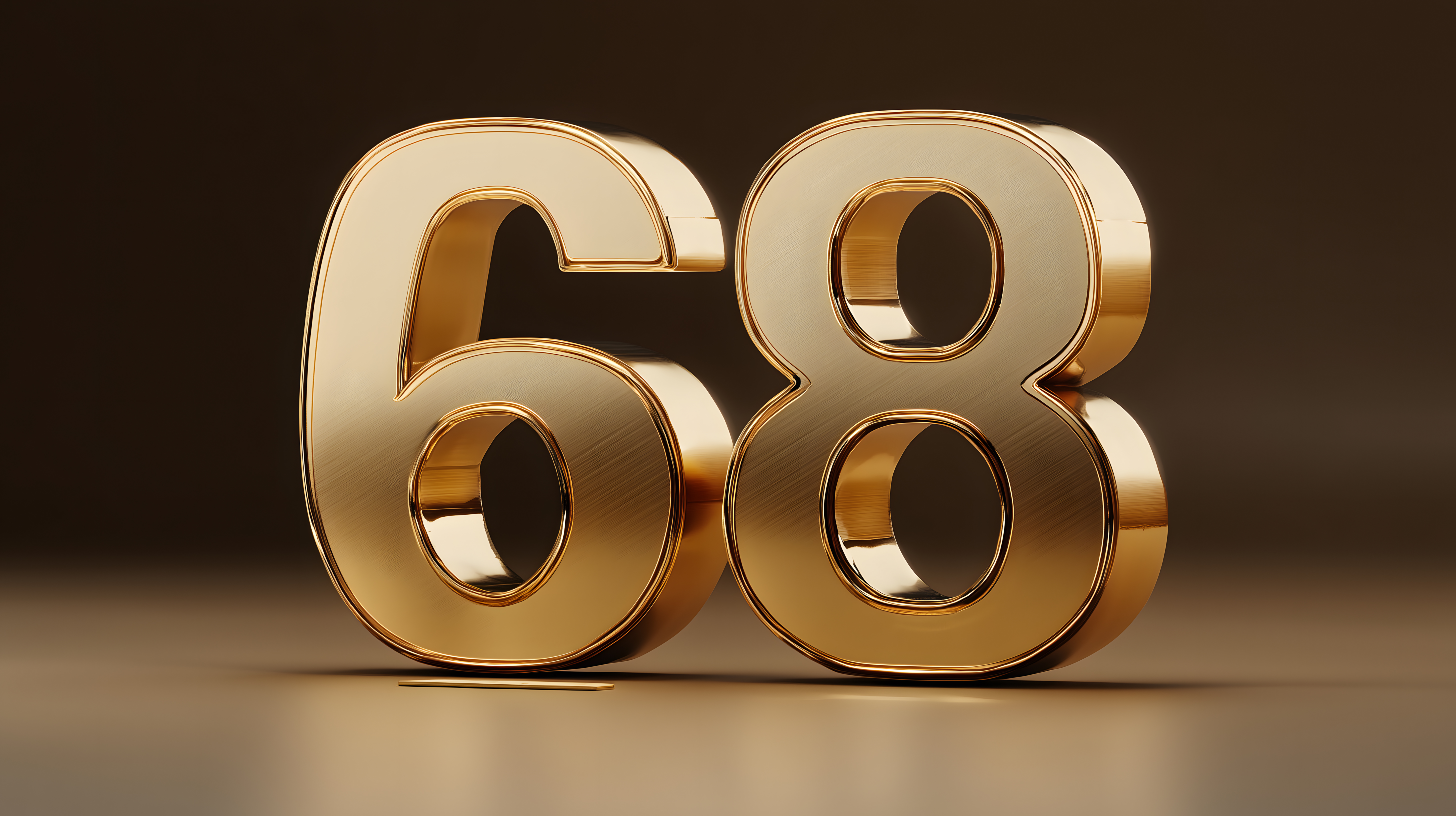 Dieses Bild zeigt zwei glänzende goldene 3D-Zahlen 68 auf einem dunklen Hintergrund. Die Zahlen haben eine hochwertige, luxuriöse Optik und scheinen aus Metall zu sein. Das reduzierte, minimalistische Design mit der starken Fokussierung auf die Zahlen erzeugt einen eleganten, modernen Gesamteindruck. Dieses Stockfoto eignet sich hervorragend für den Einsatz in Werbung, Produktvisualisierungen, Social-Media-Beiträgen oder als hochwertiger Hintergrund für Webseiten oder Präsentationen. Das Bild ist in hoher Auflösung verfügbar und unter einer Creative-Commons-Lizenz frei verwendbar.