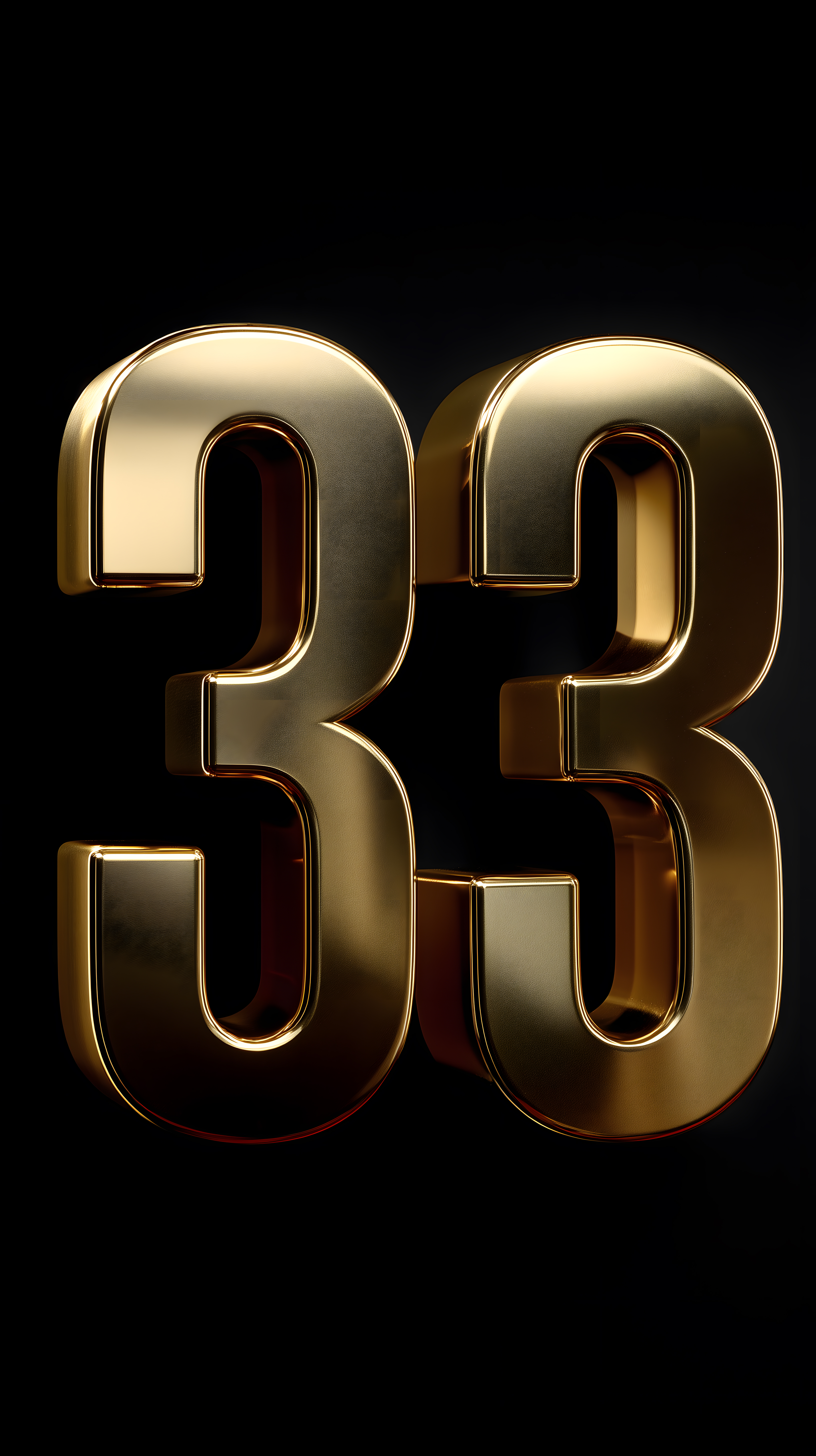 Dieses Bild zeigt eine minimalistisch gestaltete Darstellung der Zahl 33 in einem dunklen, schwarzen Hintergrund. Die Ziffern sind in einem edlen, goldenen Farbton gestaltet, was einen luxuriösen und eleganten Eindruck vermittelt. Die Komposition ist sehr reduziert und fokussiert sich ganz auf die Zahlen als Hauptmotiv. Dieses Stockfoto eignet sich hervorragend für den Einsatz in Webdesign, Werbekampagnen, Präsentationen oder anderen digitalen Anwendungen, bei denen eine hochwertige, moderne Grafik benötigt wird. Es ist in einer hohen Auflösung verfügbar und unter einer Creative Commons-Lizenz kostenfrei nutzbar.
