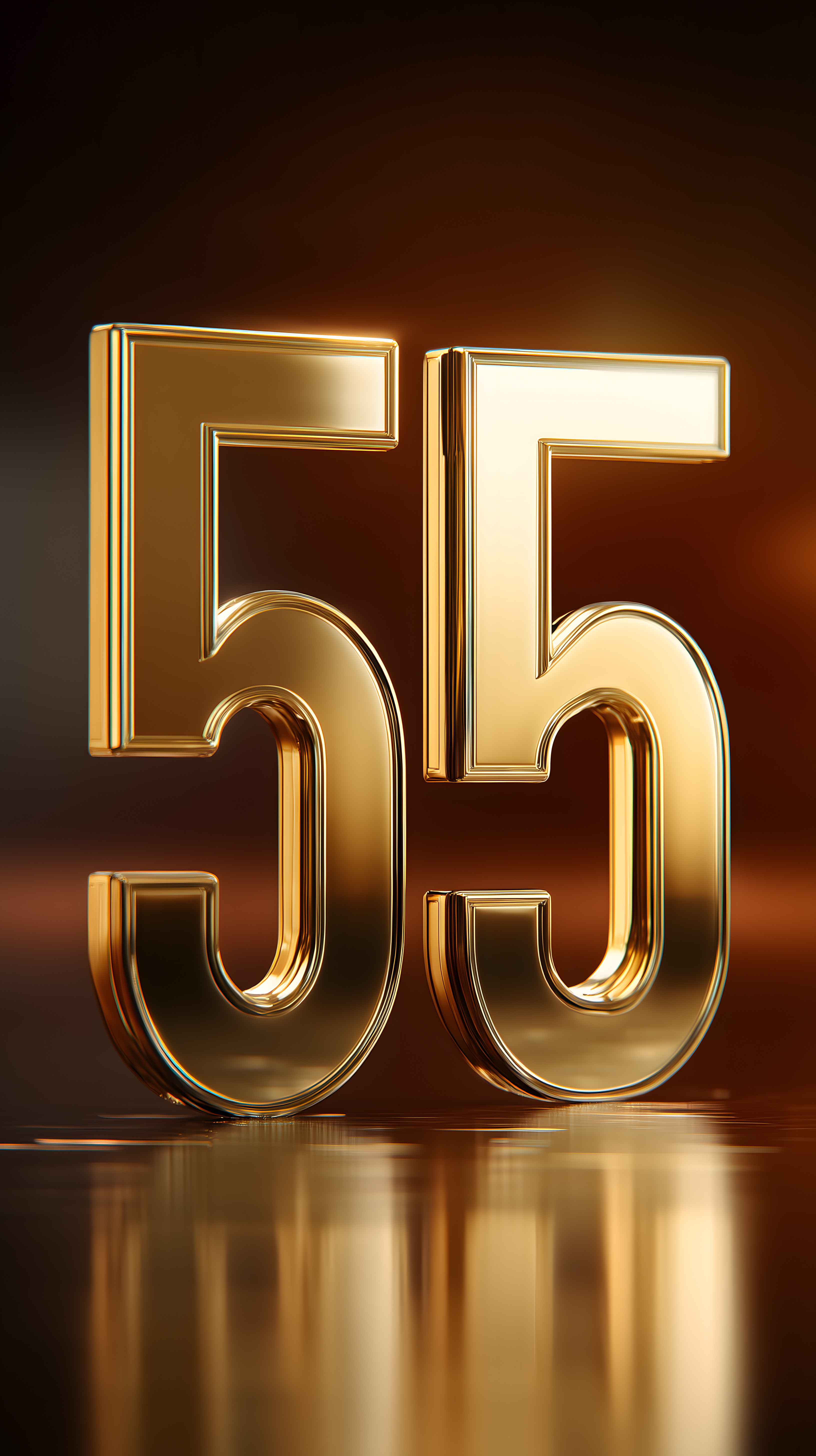 Elegante goldfarbene Jubiläumszahl 55 auf Spiegeloberfläche von Marco Verch unter Creative Commons 2.0