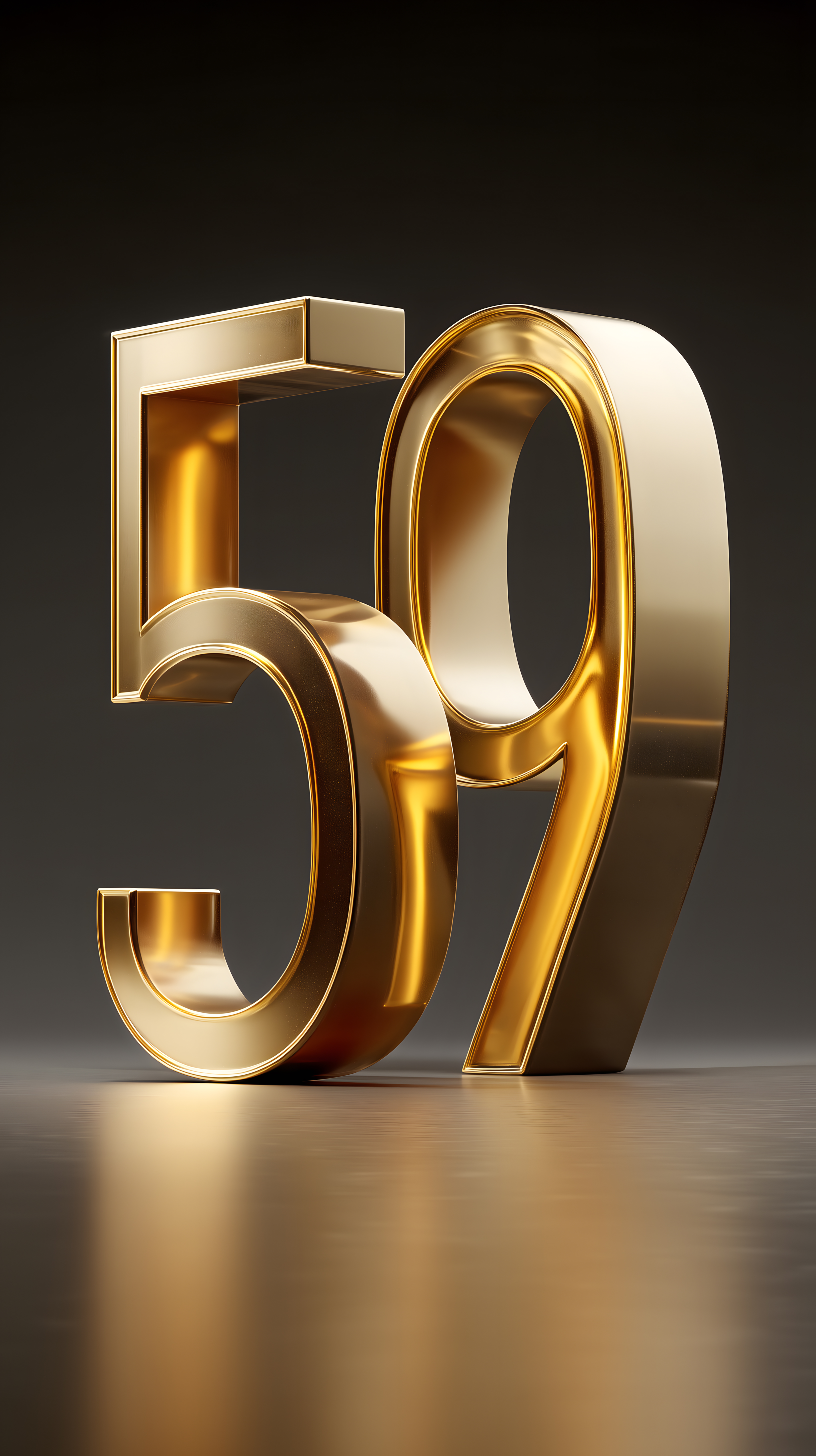 Das Bild zeigt eine glänzende, dreidimensionale, goldene Zahl '59' vor einem schwarzen Hintergrund. Die Zahl ist prägnant und strahlt durch ihr edles, metallisches Design Luxus und Exklusivität aus. Dieser Kontrast zwischen der goldenen Zahl und dem dunklen Hintergrund erzeugt einen modernen, minimalistischen Look, der perfekt für Jubiläen, Geburtstage, Jahrestage oder Feiertage geeignet ist. Das Foto könnte als Titelbild, Poster, Banner oder in Infografiken in Werbung, Social Media und verschiedenen Geschäftsberichten eingesetzt werden. Dieses kostenlose Stockfoto in hoher Auflösung und unter Creative-Commons-Lizenz ist ideal für alle, die ein elegantes, statement-starkes Bild suchen.