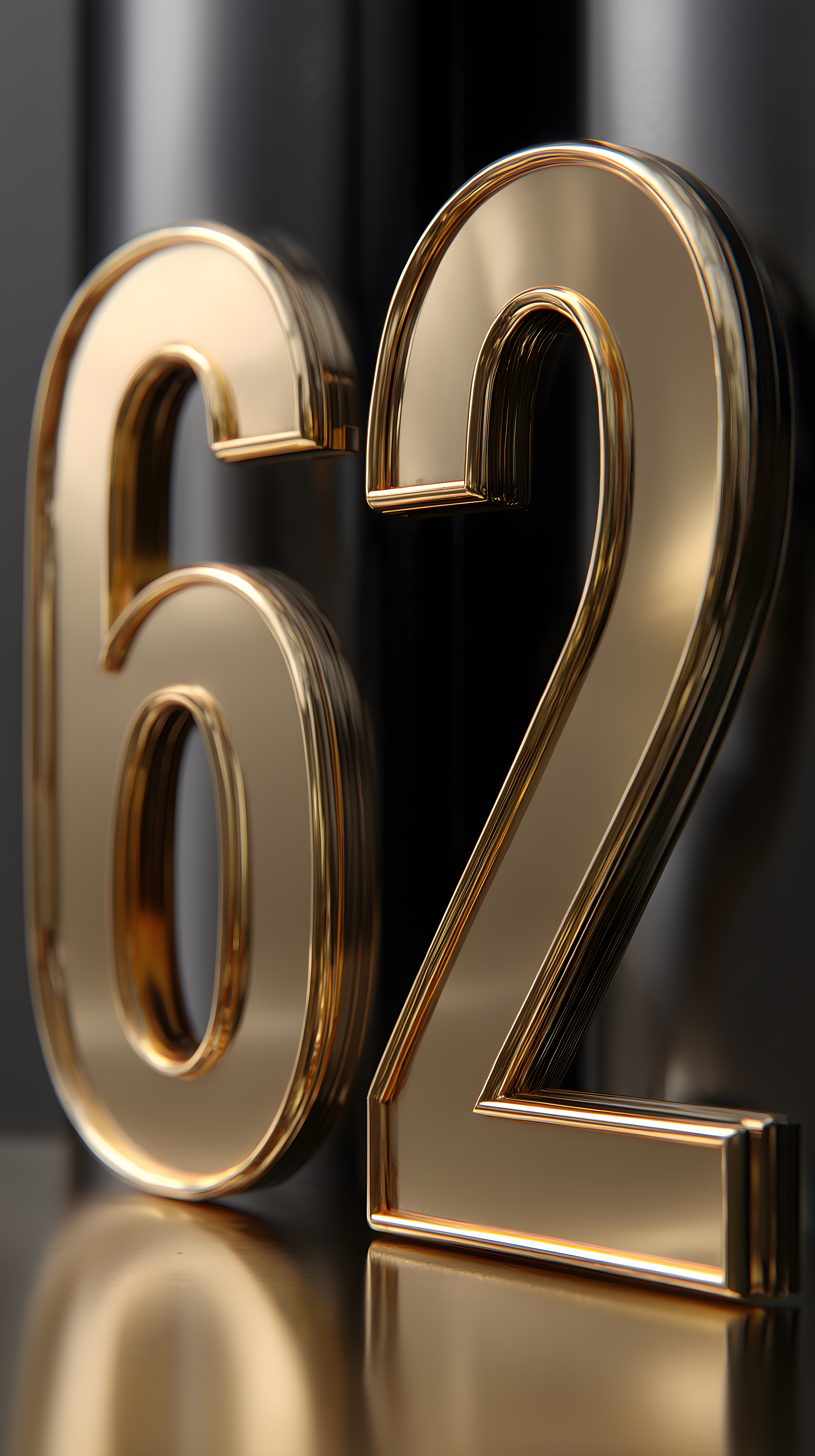 Dieses Foto zeigt glänzende, goldene Ziffern '62' auf dunklem Hintergrund. Die Zahlen haben einen metallischen, luxuriösen Look und werfen einen Schein auf die umgebende Dunkelheit. Das Motiv könnte für Layouts, Werbegestaltung oder Illustrationen in den Bereichen Grafik, Design oder Social Media eingesetzt werden. Es ist ein hochwertiges, kostenloses Stockfoto in hoher Auflösung, das unter einer Creative-Commons-Lizenz steht und frei für verschiedene Zwecke genutzt werden kann.