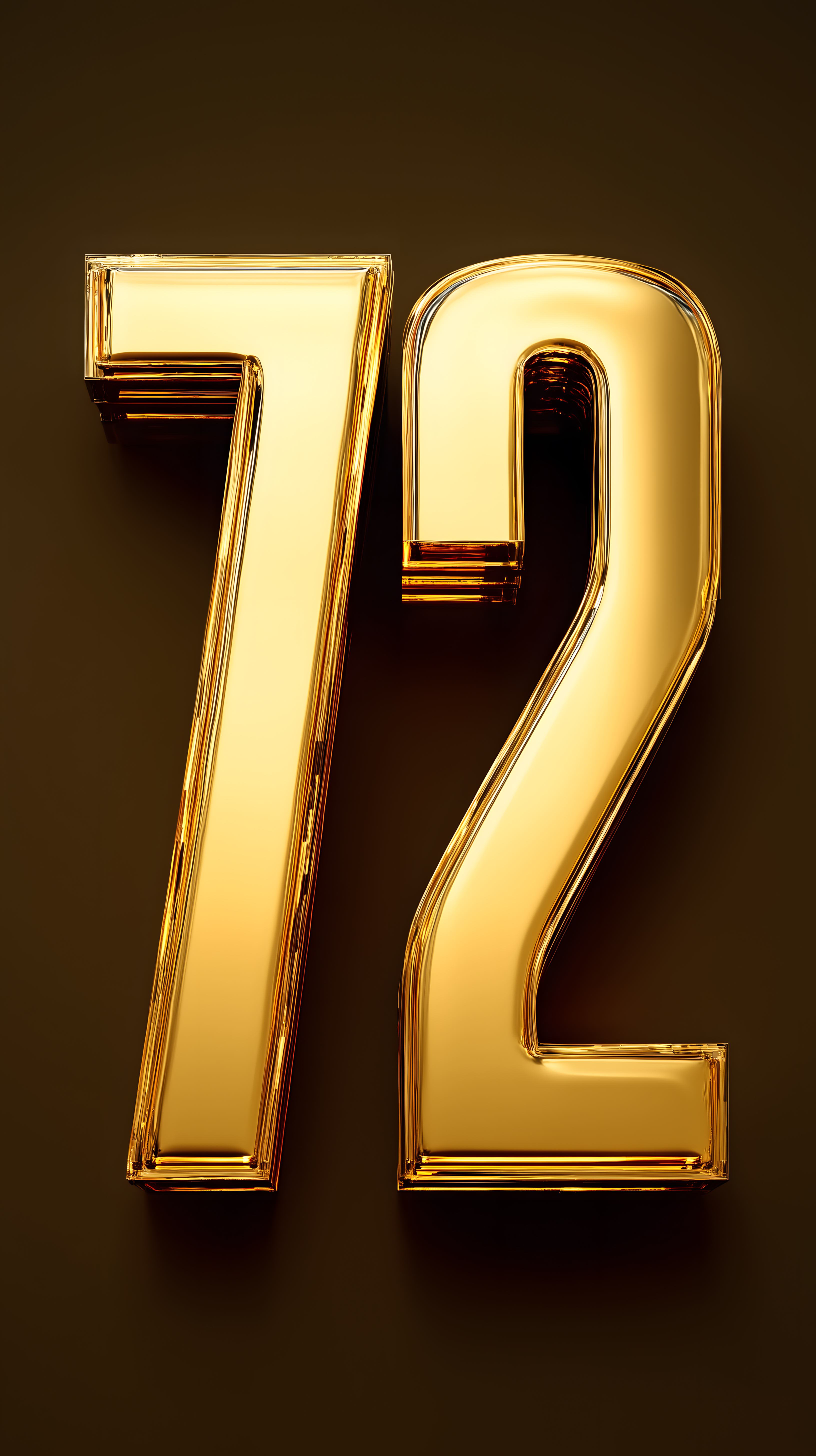 Das Bild zeigt eine groß dargestellte, goldene Zahl 72 auf einem warmen, dunklen Hintergrund. Die Zahl ist in einem modernen, eleganten Stil gestaltet und reflektiert das Licht, was ihr einen luxuriösen, glänzenden Eindruck verleiht. Die Komposition und Farbgebung schaffen eine warme, einladende Atmosphäre. Dieses Stockfoto eignet sich hervorragend für den Einsatz in Blogs, Newslettern, Social-Media-Beiträgen oder Werbematerialien, zum Beispiel für Geburtstagskarten, Jubiläen oder Jahresrückblicke. Das hochauflösende Bild steht unter Creative-Commons-Lizenz kostenfrei zur Verfügung.