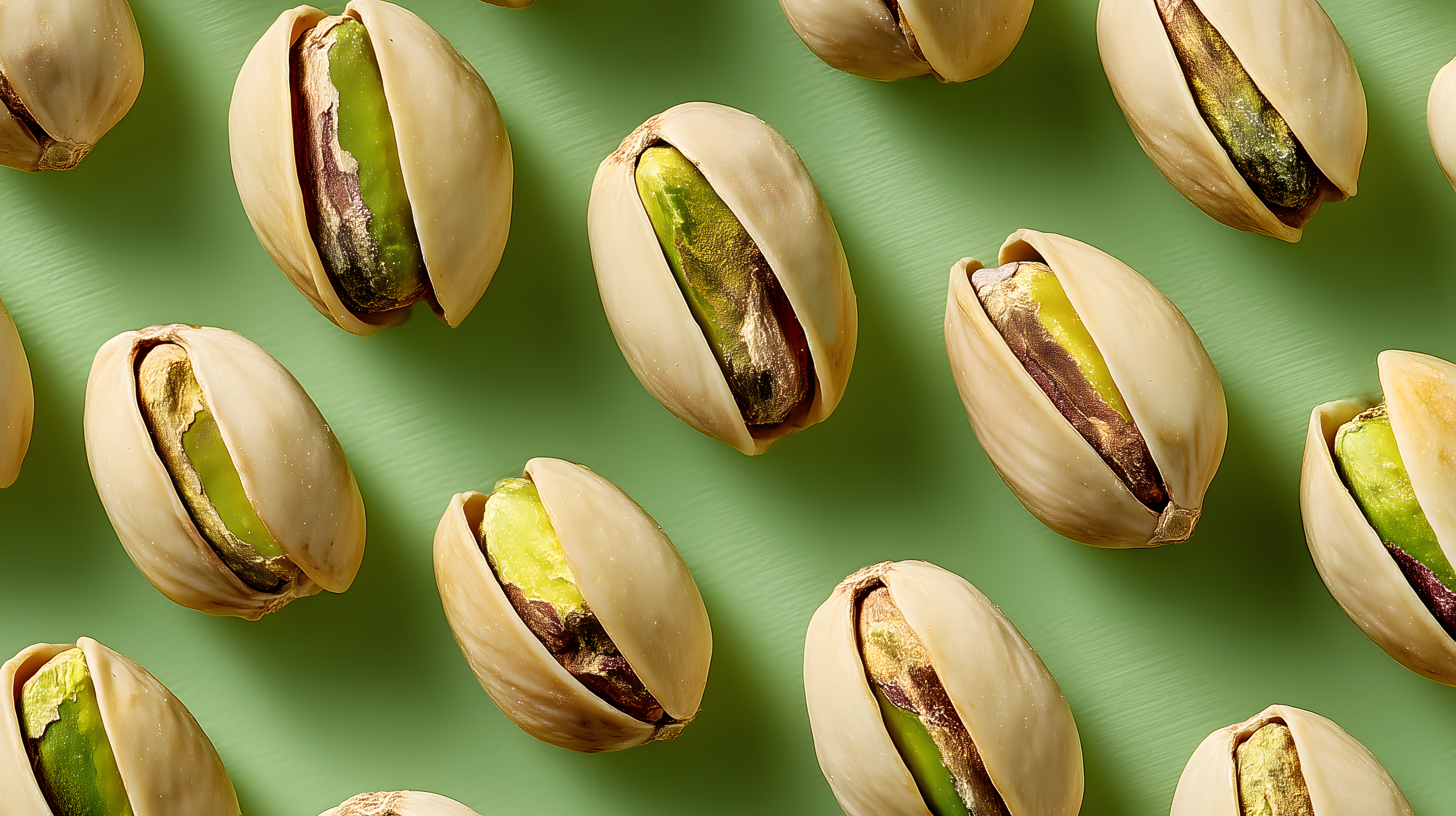 Dieses sorgfältig komponierte Foto zeigt eine Vielzahl von knackig frischen Pistazien, die in einer Schale auf einem leuchtend grünen Hintergrund angeordnet sind. Die Nüsse sind in unterschiedlichen Positionen und Winkeln platziert, was der Szene eine dynamische, natürliche Optik verleiht. Die warmen, erdigen Töne der Pistazien bilden einen wunderbaren Kontrast zu dem kräftigen Grün des Hintergrunds, der den Fokus ganz auf die Hauptmotive lenkt. Dieses Bild eignet sich perfekt als kostenloses Stockfoto für Lebensmittel-, Lifestyle- und Gesundheitsthemen, beispielsweise für Blogbeiträge, Social-Media-Posts oder Werbekampagnen. Es ist in hoher Auflösung verfügbar und unter einer Creative-Commons-Lizenz nutzbar.