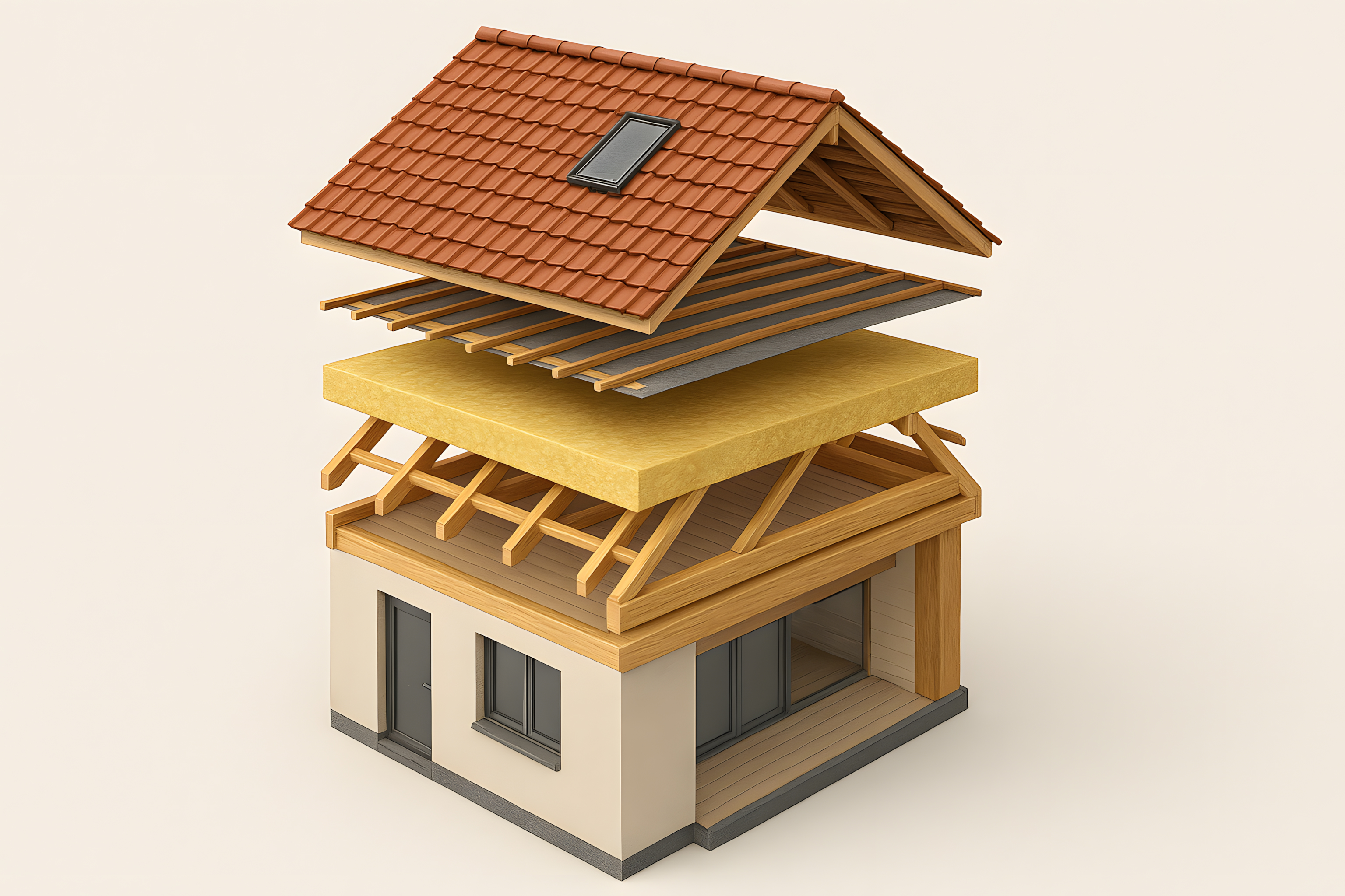Diese detaillierte Bauplan-Illustration zeigt den Aufbau eines modernen, energieeffizienten Wohnhauses. Die Explosionszeichnung veranschaulicht die verschiedenen Schichten und Komponenten des Gebäudes, wie Dach, Dämmung, Fenster und tragende Holzkonstruktion. Das Bild eignet sich hervorragend für den Einsatz in Blogs, Newslettern oder Werbematerialien rund um Themen wie Architektur, Hausbau, Renovierung oder nachhaltiges Bauen. Als kostenloses Stockfoto in hoher Auflösung und unter einer Creative-Commons-Lizenz verfügbar, kann es vielfältig und ohne Einschränkungen verwendet werden.