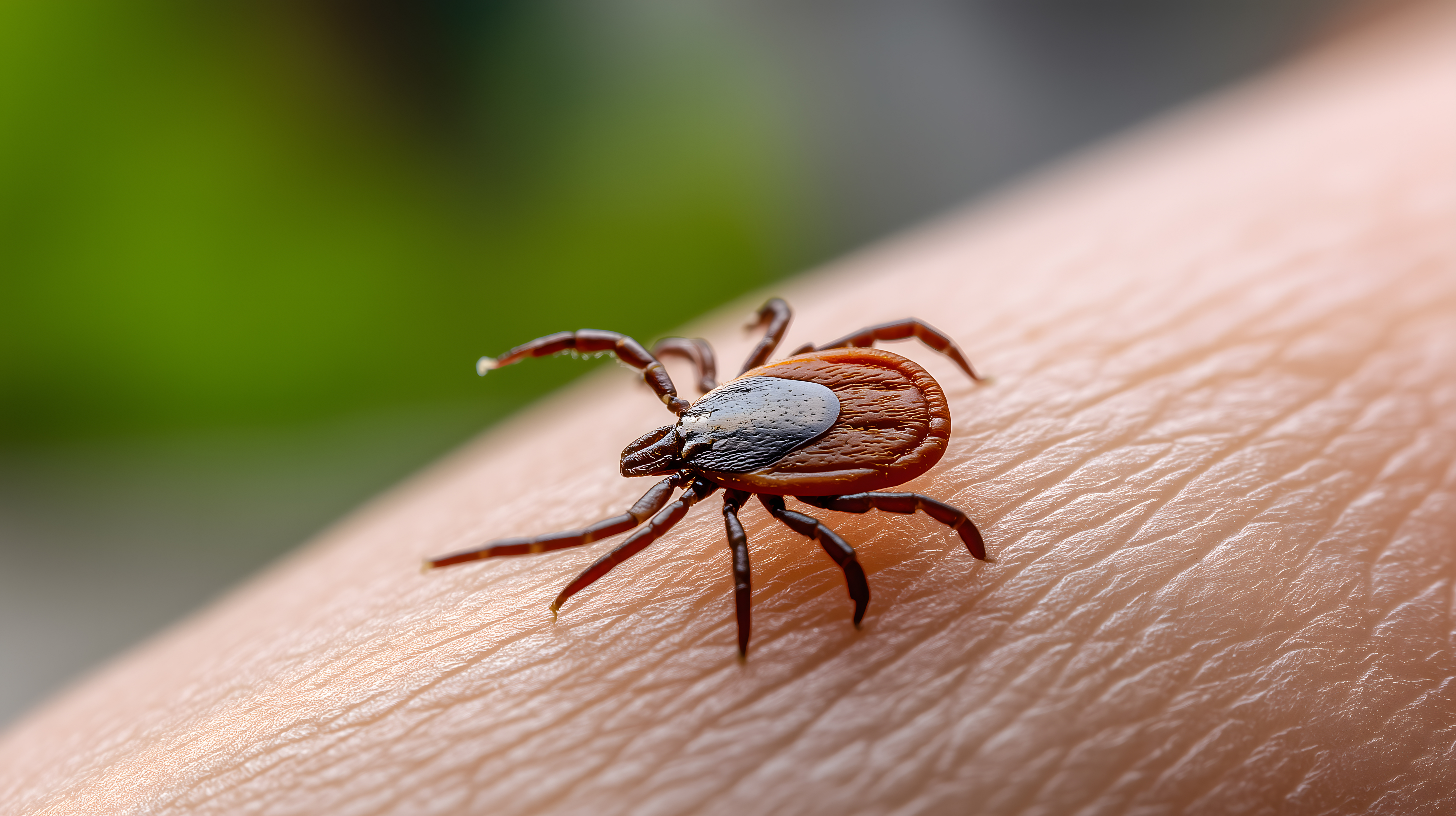 Dieses eindrucksvolle Foto zeigt eine große, rötlich-braune Zecke, die sich auf einer menschlichen Hautoberfläche festgebissen hat. Die Zecke ist in Nahaufnahme zu sehen, sodass ihre markanten Körperstrukturen und Gliedmaßen detailliert erkennbar sind. Durch die scharfe Fokussierung und den unklaren Hintergrund wird die Aufmerksamkeit ganz auf das Insekt gelenkt. Dieses Bild eignet sich hervorragend für Beiträge zu Gesundheitsthemen, Naturkunde oder als kostenloses Stockfoto mit hoher Auflösung unter einer Creative-Commons-Lizenz.