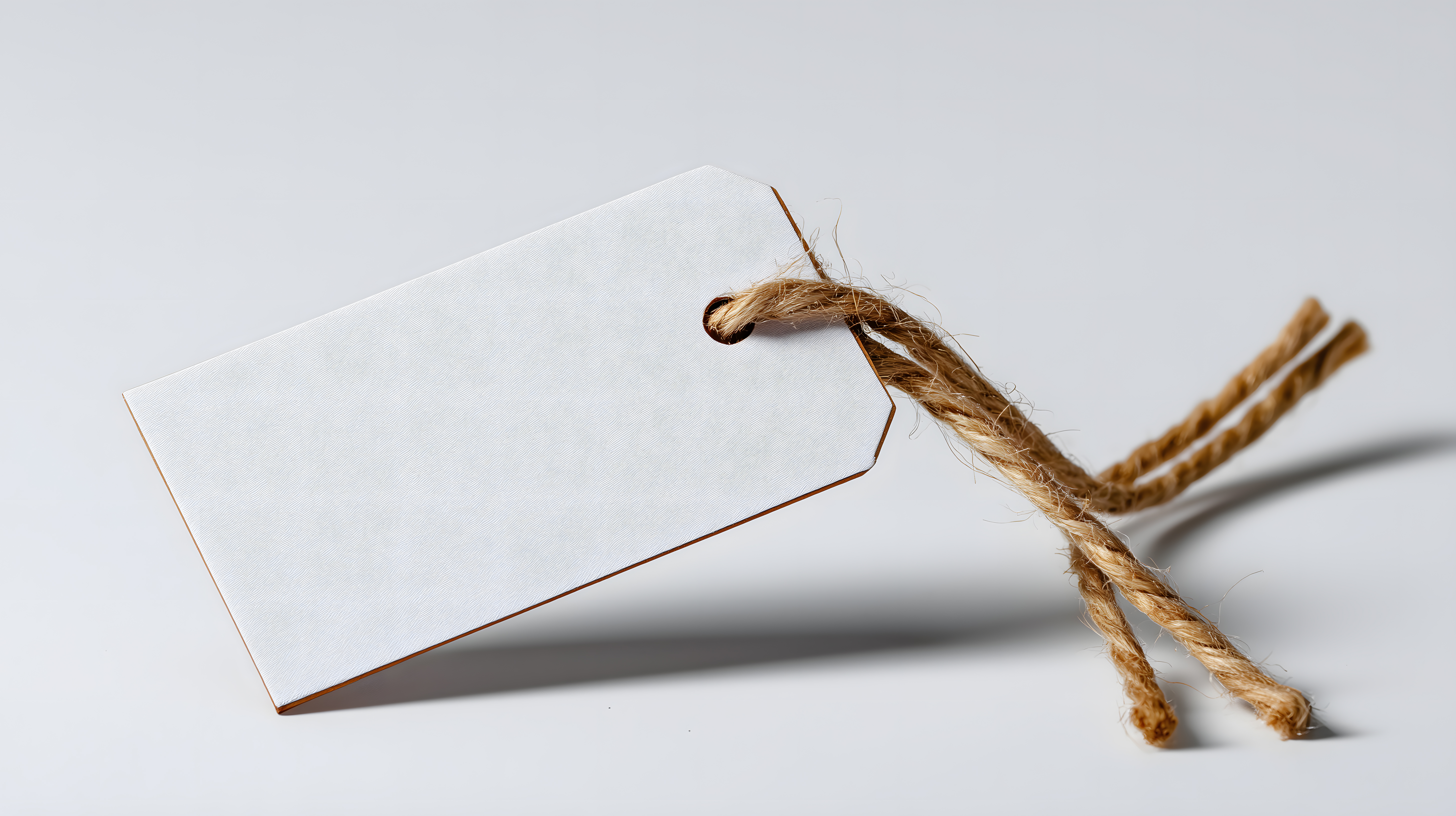 Das Bild zeigt ein leeres weißes Etikett oder Preisschild, das mit einem Seil oder Faden an einem sehr hellen, neutralen Hintergrund befestigt ist. Die minimalistische Komposition lenkt den Blick ganz auf das schlichte, rechteckige Schild, das bereit ist, mit Informationen oder einer Botschaft beschriftet zu werden. Dieses Stockfoto eignet sich hervorragend als Vorlage oder Mockup für Werbung, Produktpräsentationen, Blogbeiträge, Newsletter oder Soziale Medien. In hoher Auflösung und unter einer Creative-Commons-Lizenz verfügbar, lässt es sich flexibel und kostenfrei einsetzen.