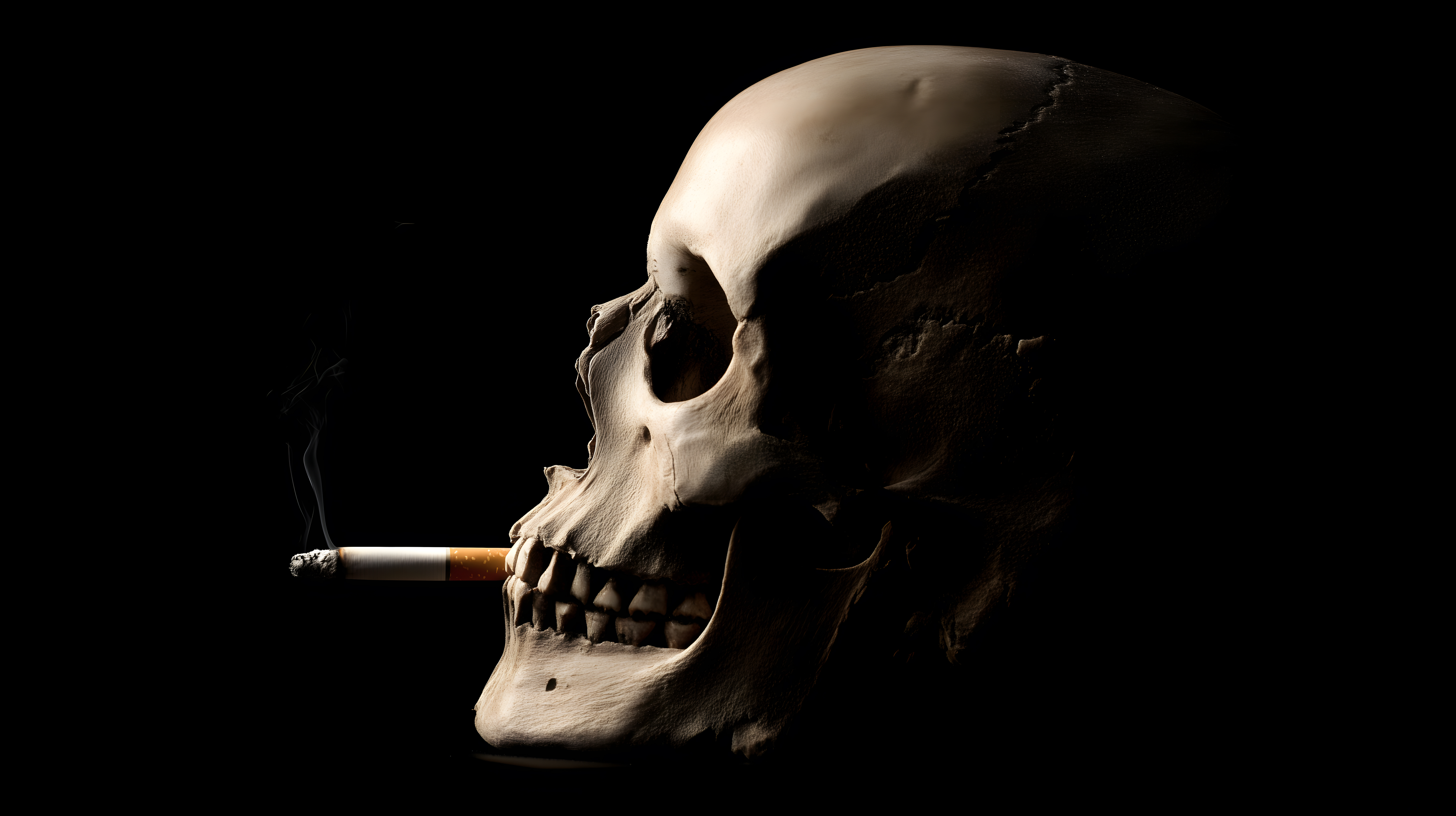 Dieses eindringliche Schwarz-Weiß-Foto zeigt einen Schädelknochen, der eine brennende Zigarette im Mund hält. Das Bild dient als symbolische Darstellung der Gefahren und Gesundheitsrisiken des Rauchens. Mit dem starken Kontrast und der düsteren Stimmung vermittelt es eine bedrohliche und warnende Botschaft. Dieses hochauflösende Stockfoto eignet sich hervorragend für Kampagnen, Blogbeiträge oder Social-Media-Inhalte rund um das Thema Rauchersucht, Gesundheit und Prävention. Es steht unter einer Creative-Commons-Lizenz kostenlos zur Verfügung.