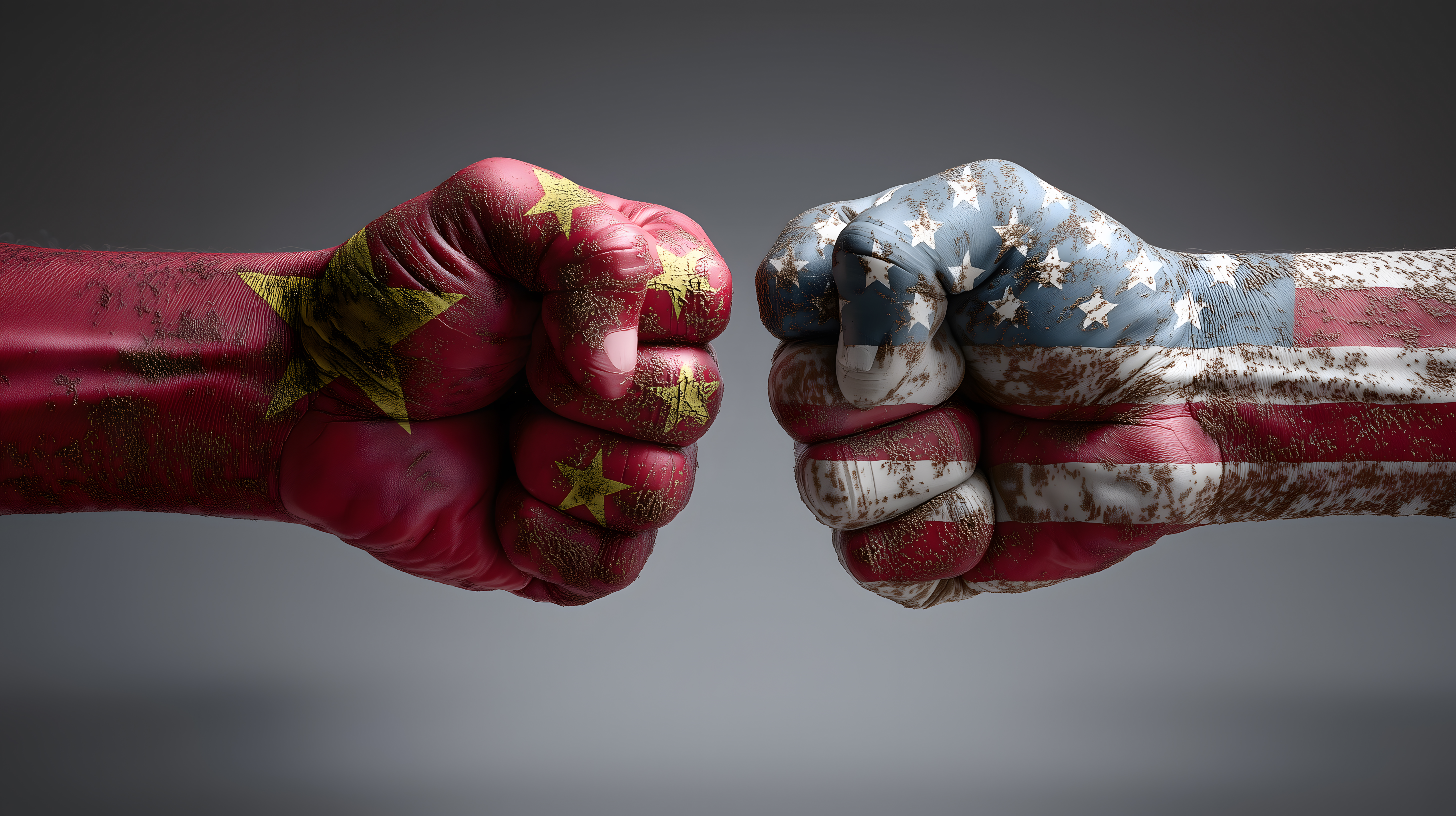 Das Bild zeigt zwei Fäuste, die mit den Nationalflaggen von China und den USA bemalt sind. Sie stehen sich in einer bedrohlichen Geste gegenüber, was die politische Spannung und den Konflikt zwischen den beiden Ländern symbolisiert. Die Schwarzweißfotografie betont den dramatischen Charakter der Szene und lässt den Betrachter die Intensität des Konflikts spüren. Das Foto eignet sich gut für Berichte, Analysen oder Kommentare zu den aktuellen geopolitischen Entwicklungen und kann beispielsweise in Blogs, Newslettern oder sozialen Medien eingesetzt werden. Dieses hochauflösende Stockfoto steht unter einer Creative-Commons-Lizenz zur Verfügung.
