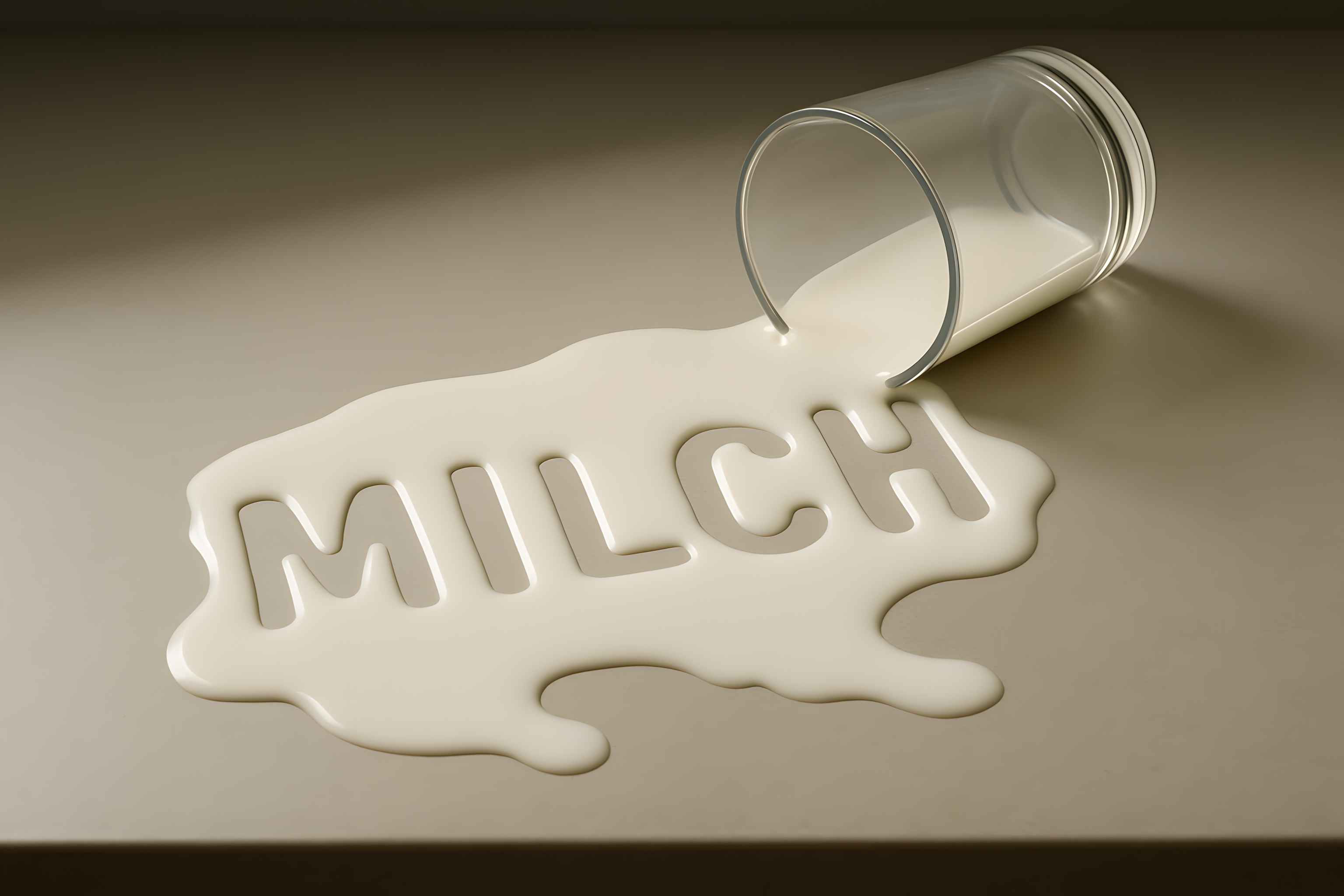 Das Bild zeigt eine verschüttete Portion Milch auf einem Tisch. Der weiße Milchfleck kontrastiert mit dem natürlichen, etwas dunklen Hintergrund. Der Milchspritzer formt den Schriftzug 'MILCH' in der Mitte des Bildes, was der Szene einen humorvollen und kreativen Charakter verleiht. Dieses Stockfoto eignet sich hervorragend für Blogbeiträge, Newsletter oder Social-Media-Postings in den Bereichen Küche, Lebensmittel, Kreativität oder Unordnung. Das hochauflösende Bild ist unter einer kostenlosen Creative-Commons-Lizenz verfügbar.