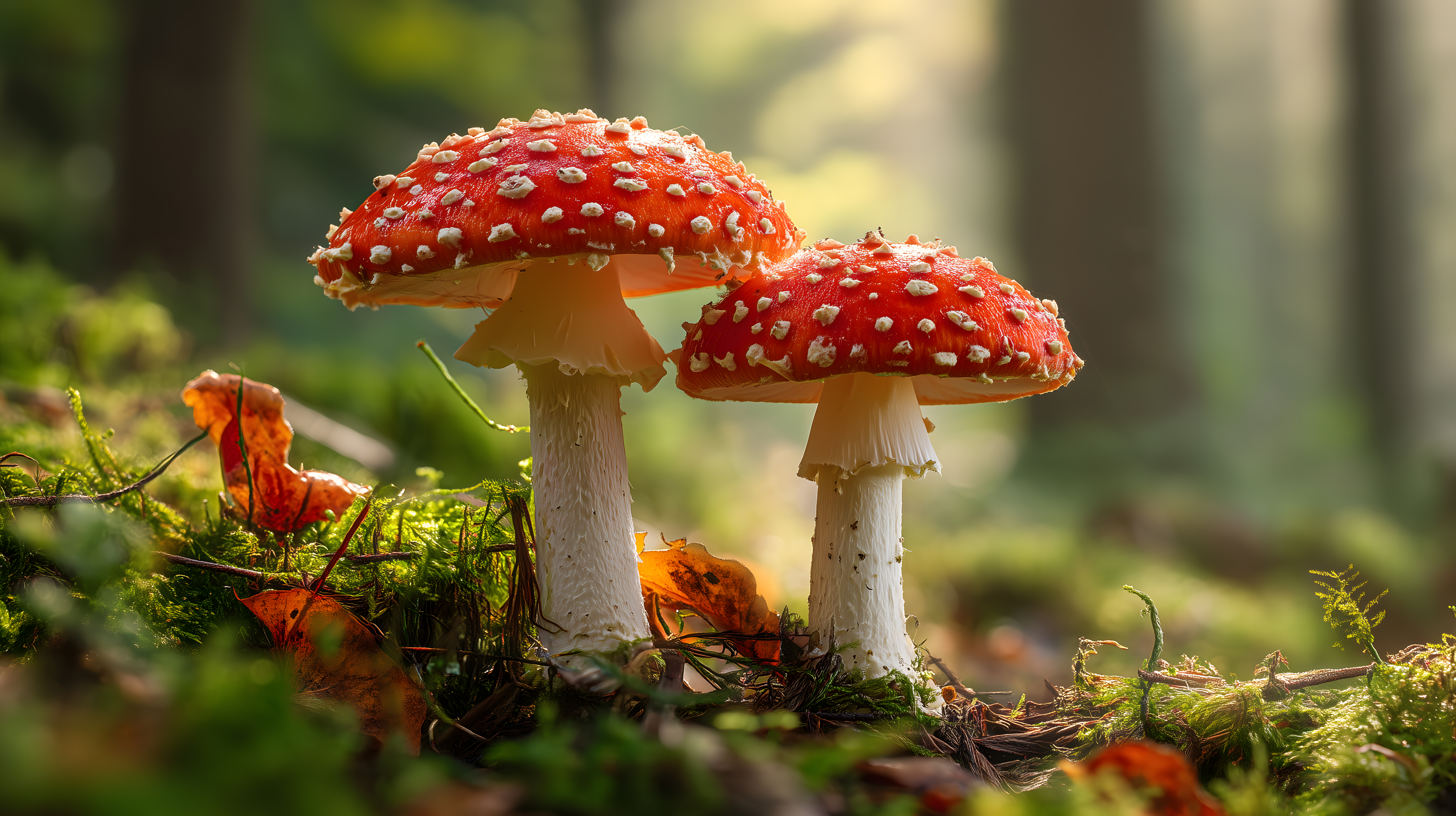 Das Bild zeigt zwei leuchtend rote Fliegenpilze, die inmitten von saftig grünem Waldmoos gewachsen sind. Die Pilze heben sich mit ihren markanten Farben und Formen eindrucksvoll von der umgebenden Natur ab. Die Aufnahme besticht durch ihre scharfe Fokussierung und die ausgewogene Komposition, welche die Pilze als Hauptmotive hervorhebt. Dieses Naturmotiv eignet sich hervorragend als stimmungsvolle Illustration für Blog-Beiträge, Newsletter oder Social-Media-Kanäle rund um Naturthemen, Herbst, Pilze oder Botanik. Als kostenloses Stockfoto in hoher Auflösung und unter Creative-Commons-Lizenz kann es frei genutzt werden.