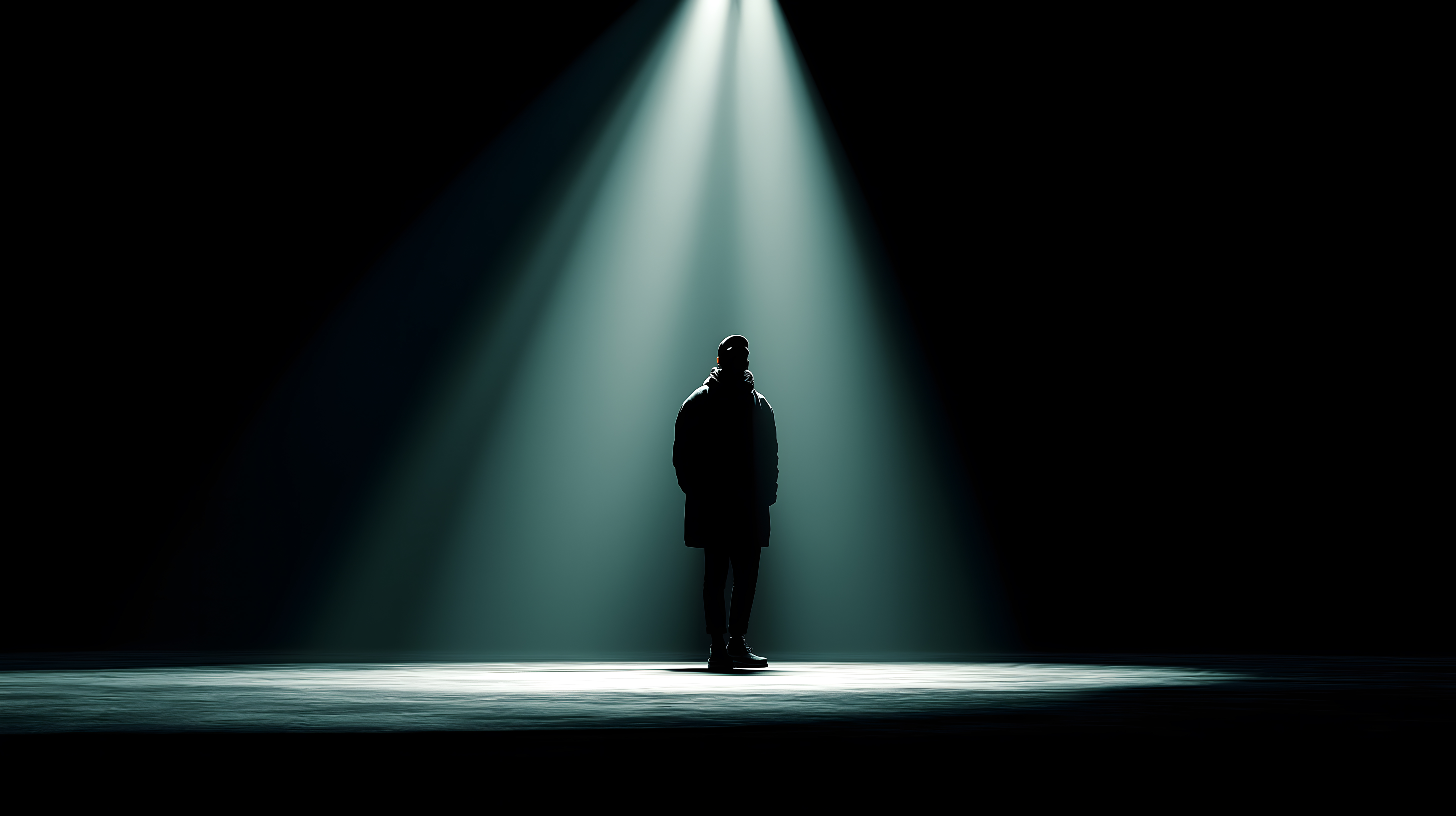 Dieses fesselnde Foto zeigt eine einsame Silhouette, die von einem Scheinwerferlicht in der Dunkelheit einer Bühne beleuchtet wird. Der starke Kontrast zwischen Licht und Schatten erzeugt eine geheimnisvolle und dramatische Stimmung. Das Bild lässt viel Raum für Interpretation und eignet sich hervorragend als Hintergrund für Werbe- oder Editorialinhalte, die Themen wie Kreativität, Inspiration, Reflektion oder Sinnsuche transportieren möchten. Dieses hochauflösende Stockfoto steht unter einer Creative-Commons-Lizenz zur kostenlosen Verwendung zur Verfügung.