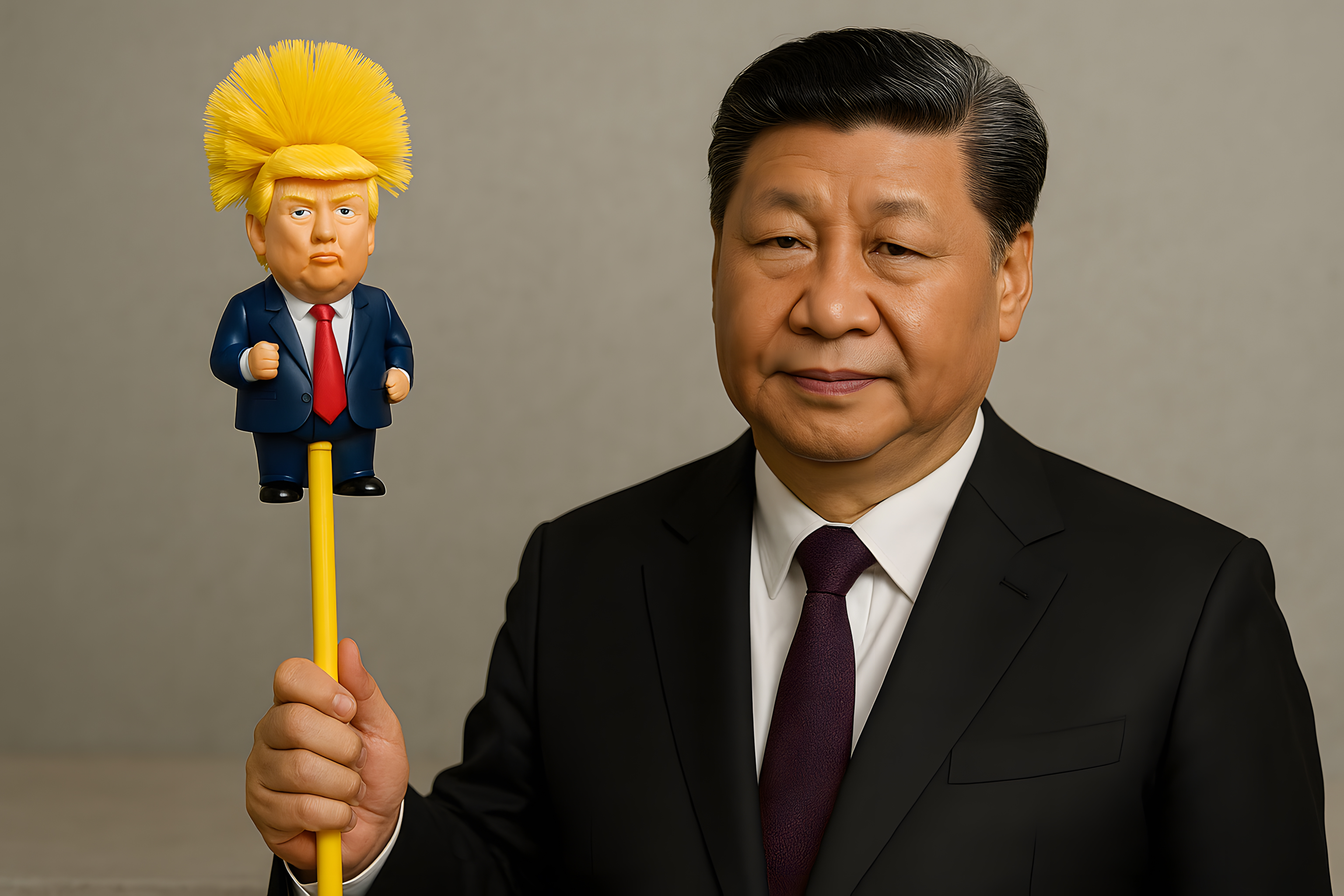 Das Bild zeigt einen ernsten asiatischen Geschäftsmann, der eine Karikatur-Figur in Form einer Donald Trump-Puppe hochhält. Die kontrastierenden Elemente schaffen einen humorvollen, satirischen Gesamteindruck, der politische und gesellschaftliche Themen aufgreift. Die Komposition und Farbgebung wirken hochwertig und künstlerisch, was das Bild als hochwertiges Stockfoto für kreative, konzeptionelle oder redaktionelle Zwecke ausweist. Als kostenloses, in hoher Auflösung verfügbares Stockfoto unter einer Creative-Commons-Lizenz eignet sich das Bild ideal für den Einsatz in Blogs, Newslettern, Social-Media-Posts oder Werbekampagnen.