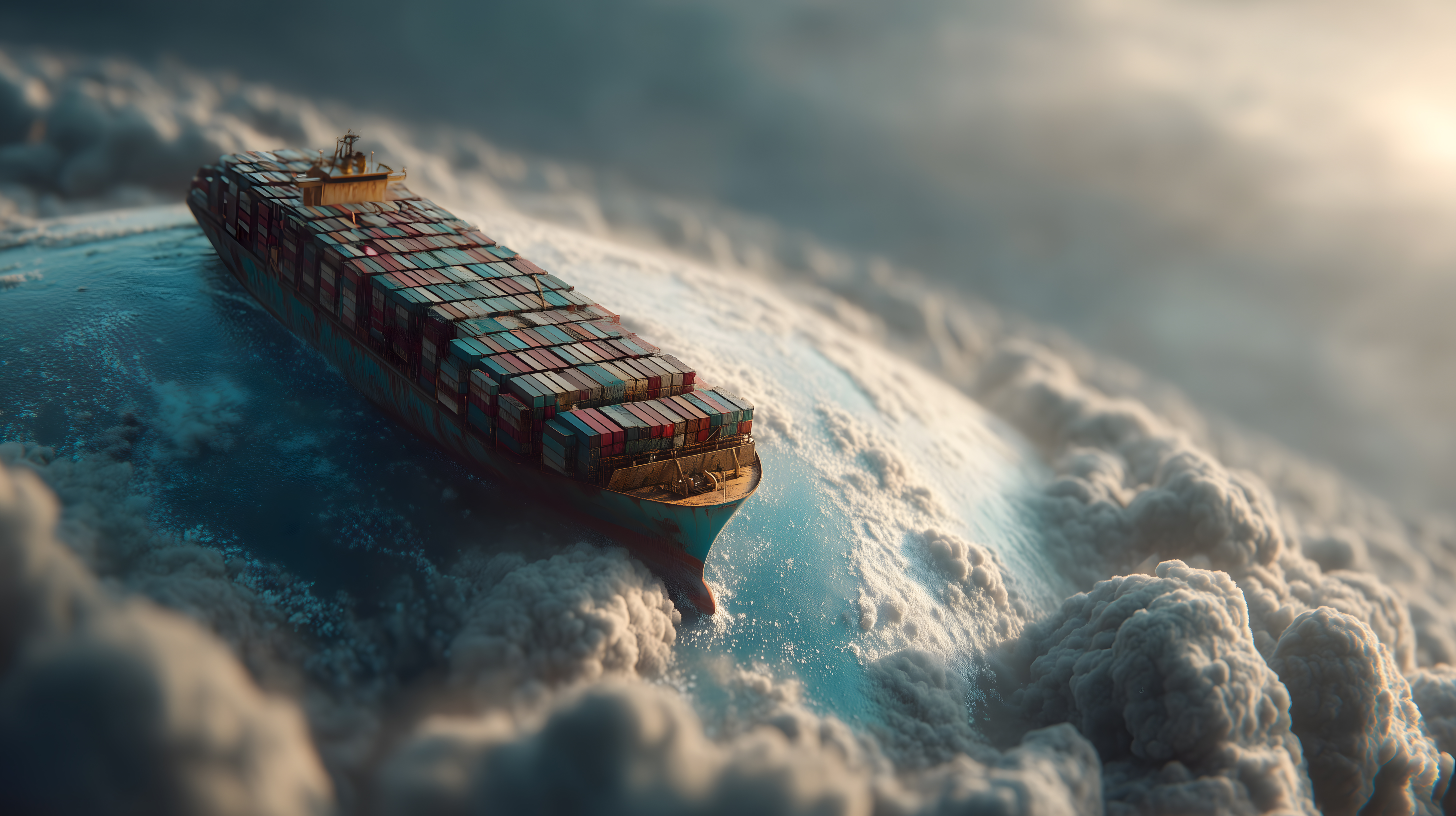 Dieses faszinierende digitale Kunstwerk zeigt ein gigantisches Containerschiff, das über einer dramatischen Wolkenlandschaft schwebt. Die einzigartige Perspektive und surreale Szenerie lassen den Betrachter staunen. Das Bild ist voller Symbolik und spricht Themen wie Globalisierung, internationale Handelsrouten und den Fortschritt der Logistik an. Es eignet sich hervorragend für den Einsatz in Blogs, Newslettern, Social-Media-Kanälen oder Werbematerialien, wo es die Fantasie und Kreativität des Betrachters anregt. Dieses hochauflösende Foto ist unter einer Creative-Commons-Lizenz frei nutzbar.