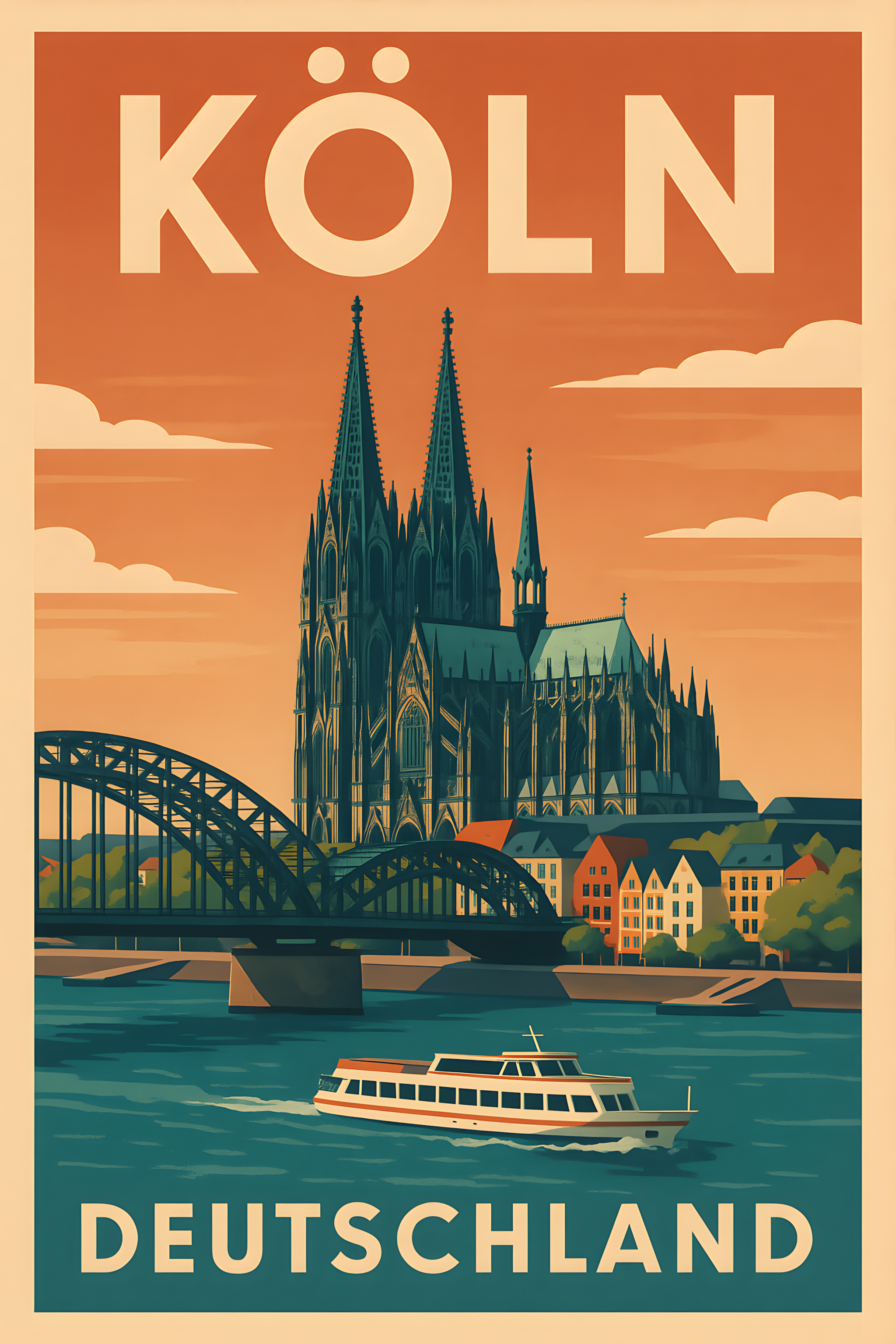 Retro-Poster mit Kölner Dom und Rhein von Marco Verch unter Creative Commons 2.0