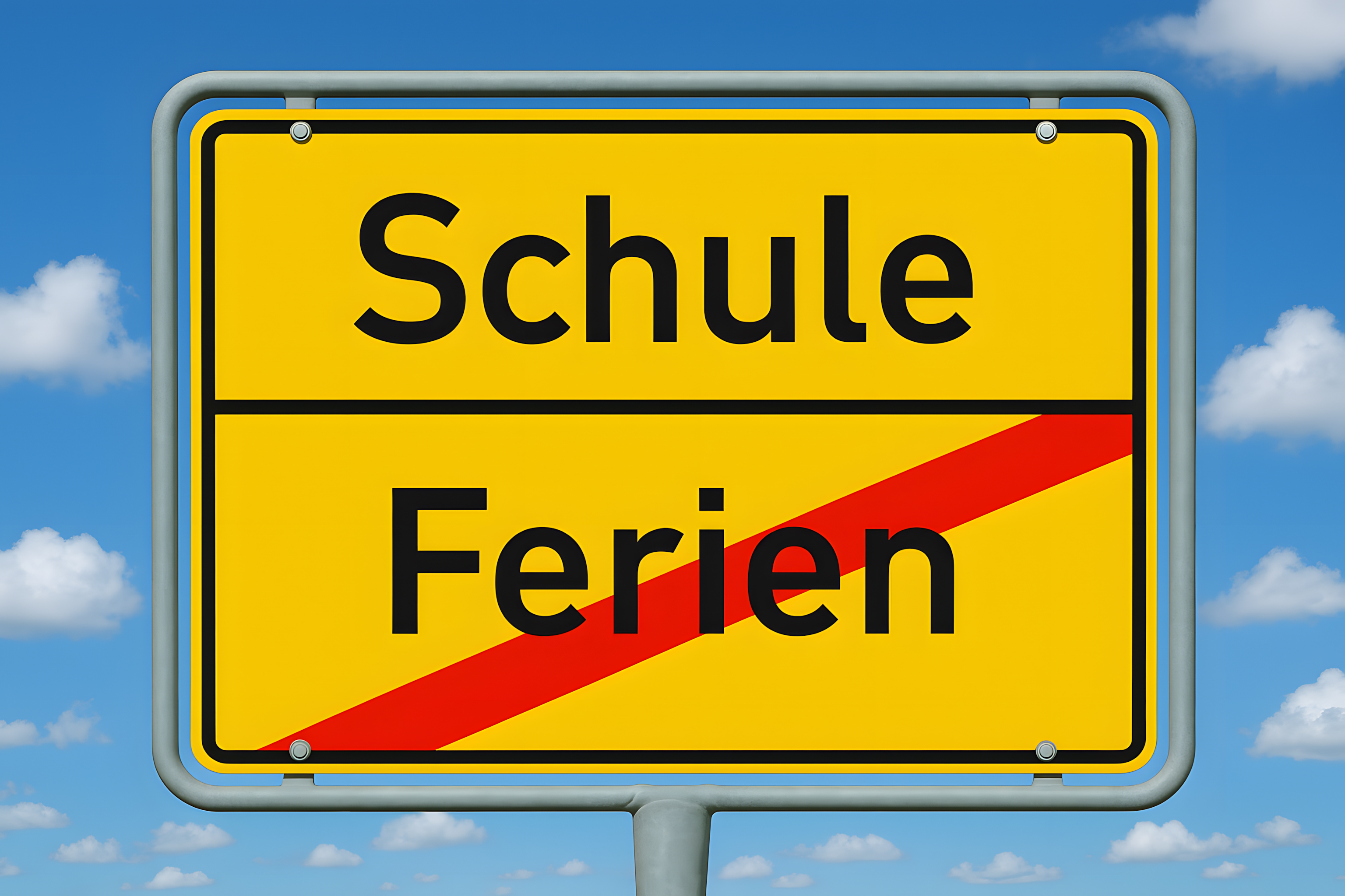 Dieses Foto zeigt ein typisches deutsches Ortsschild am Straßenrand, das den Beginn der Schulzeit nach den Sommerferien ankündigt. Das gelbe Schild mit schwarzer Beschriftung steht vor einem wolkenverhangenen, aber ansonsten klaren, blauen Himmel. Darunter befindet sich ein rotes Zusatzschild, das die Ferienzeit symbolisch beendet. Das Bild vermittelt einen Eindruck von Aufbruch und Neuanfang nach der Erholungsphase und ist ideal für die Verwendung in Beiträgen zu Themen wie Bildung, Schuljahresbeginn oder saisonale Veränderungen. Als hochwertiges, kostenloses Stockfoto in großer Auflösung und unter Creative-Commons-Lizenz lässt es sich vielfältig in Blogs, Social-Media-Kanälen oder Werbematerialien einsetzen.