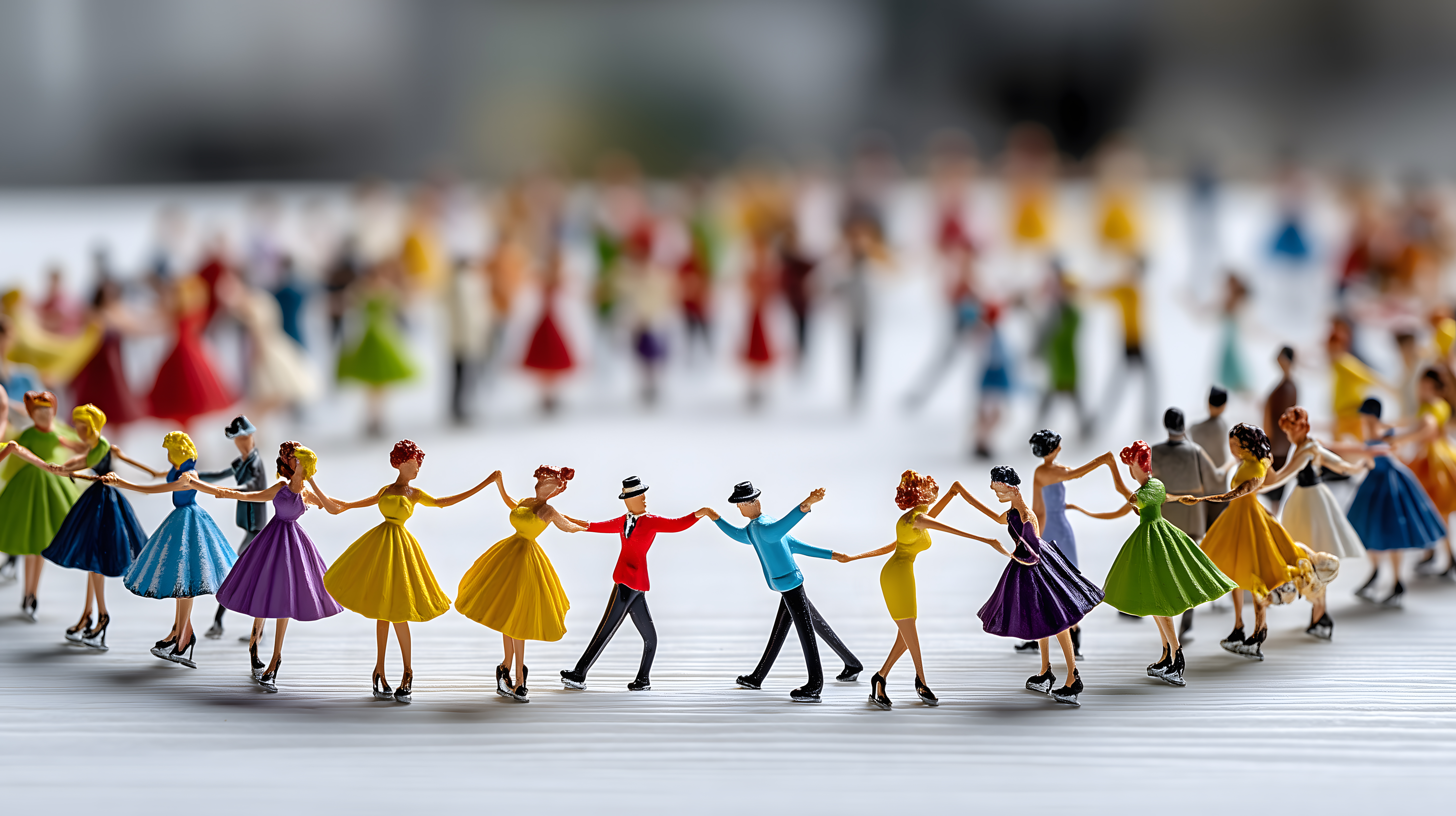 Diese detailreiche Illustration zeigt eine Gruppe bunter Miniaturmenschen, die fröhlich Hand in Hand einen Kreistanz aufführen. Die kleinen Figuren in verschiedensten Kleidungsstilen und Farben vermitteln ein Gefühl von Lebendigkeit und Freude. Diese stimmungsvolle Szene könnte für Hintergrundbilder, Einladungskarten, Werbematerial oder Illustrationen in Kinderbüchern und Magazinen genutzt werden. Das hochwertige Stockfoto ist in hoher Auflösung und unter einer Creative-Commons-Lizenz frei verwendbar.