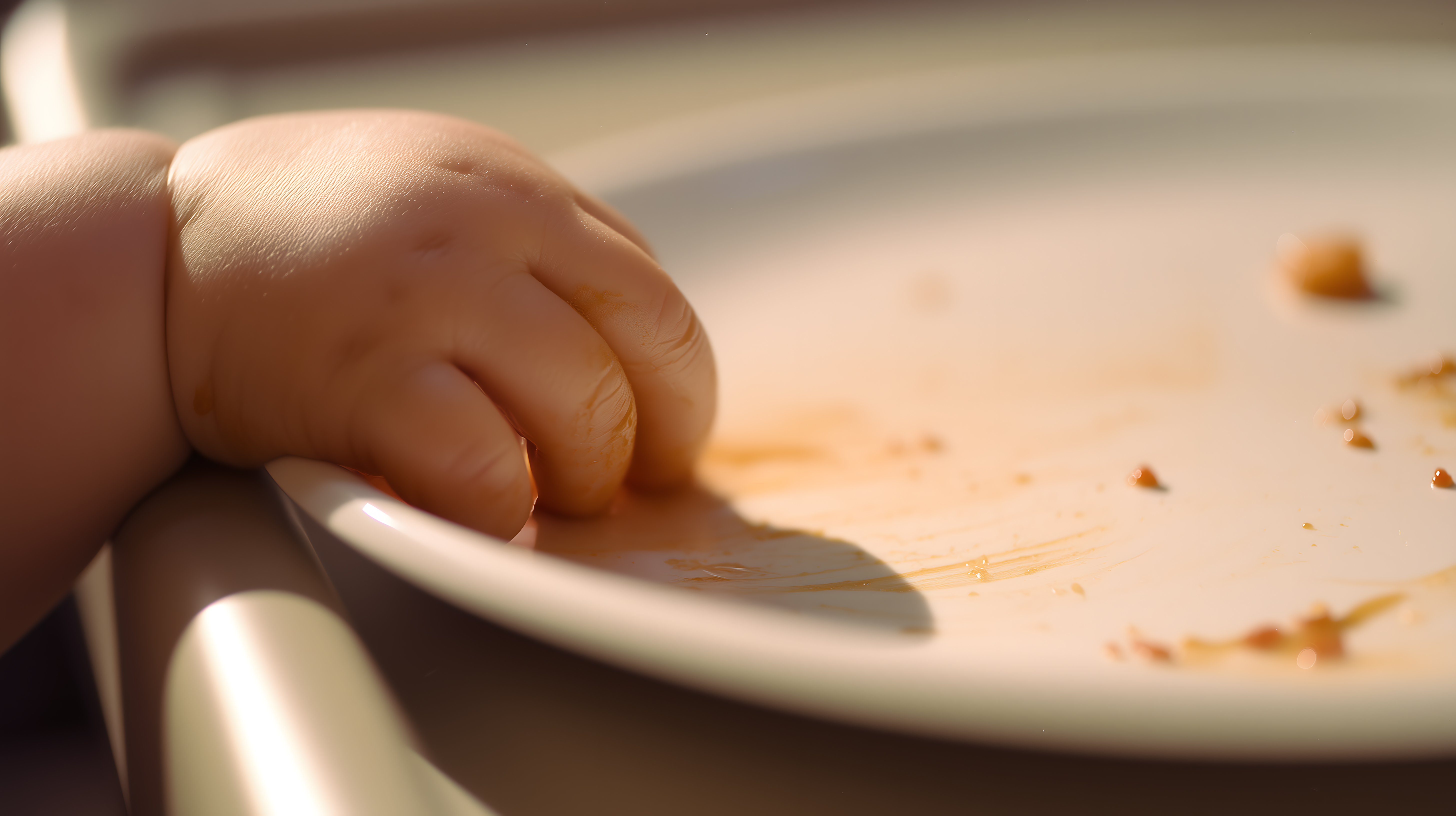 Das Foto zeigt die Nahaufnahme einer winzigen Babyhand, die nach den Essensresten auf einem Teller greift. Der Teller ist leicht verschmutzt und gibt einen gemütlichen, häuslichen Eindruck wieder. Der Fokus liegt auf dem kleinen, rosafarbenen Finger, der sich nach dem Essen ausstreckt. Die Perspektive ist nah und intim, was den Betrachter direkt in den Moment einbindet. Diese detailreiche Aufnahme eignet sich hervorragend für Beiträge zu Themen wie Familienleben, Ernährung, Alltagsmomente oder den Entwicklungsfortschritt von Babys. Als hochaufgelöstes, kostenloses Stockfoto unter Creative-Commons-Lizenz kann es für vielfältige Anwendungen in Blogs, Newslettern oder Social-Media-Kanälen genutzt werden.