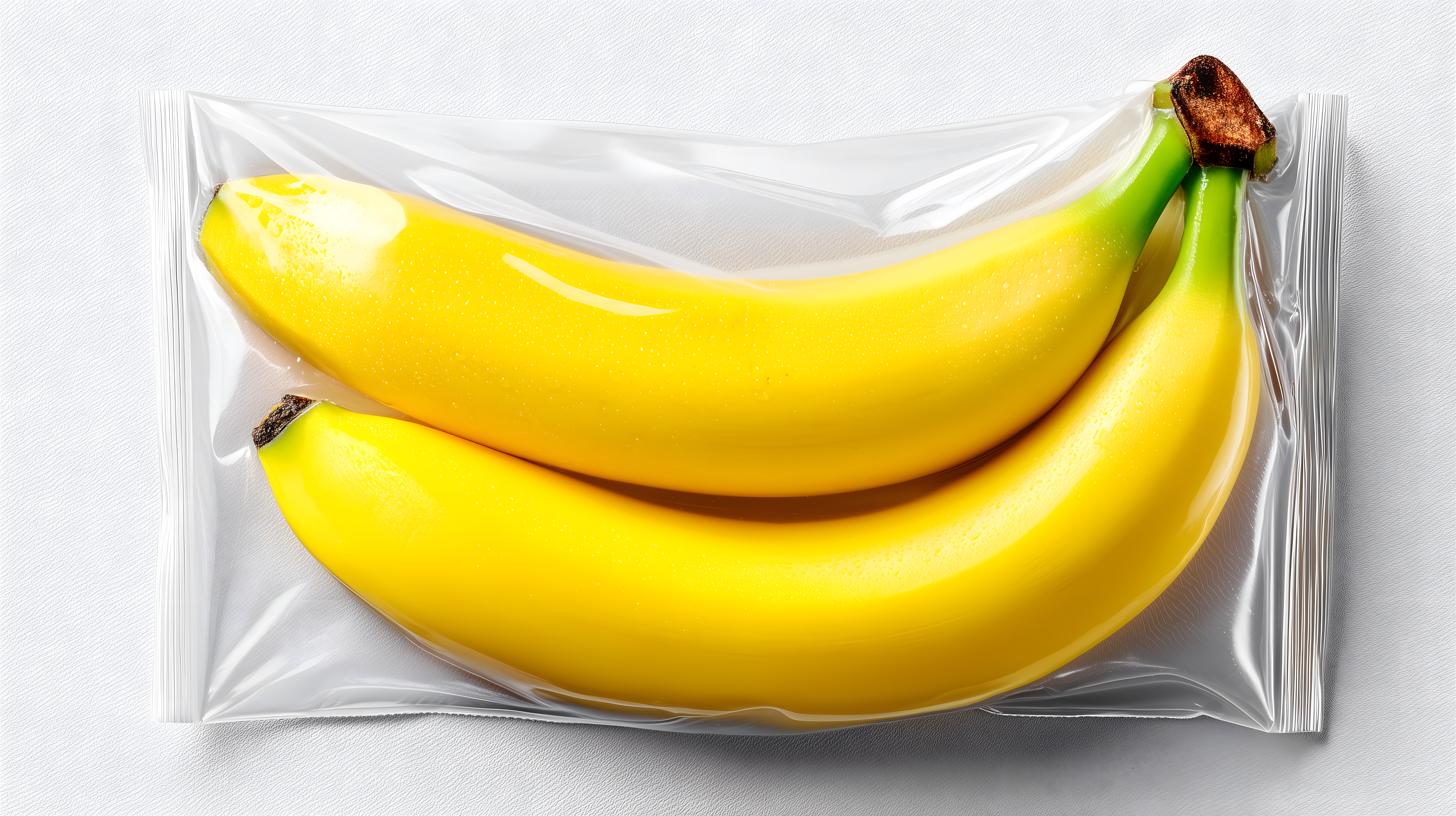 Dieses Foto zeigt zwei frische, reife Bananen, die in einer durchsichtigen Folie verpackt sind. Die gelben Früchte heben sich vor dem weißen Hintergrund klar ab und verleihen dem Bild eine natürliche, appetitliche Ausstrahlung. Die Plastikverpackung unterstreicht den modernen, minimalistischen Look und macht das Foto ideal für den Einsatz in Blogbeiträgen, Newslettern oder Werbematerialien zu Themen wie gesunde Ernährung, vegetarische Rezepte oder Bio-Lebensmittel. Dieses hochauflösende Stockfoto ist unter einer Creative-Commons-Lizenz frei für den kommerziellen und privaten Gebrauch verfügbar.