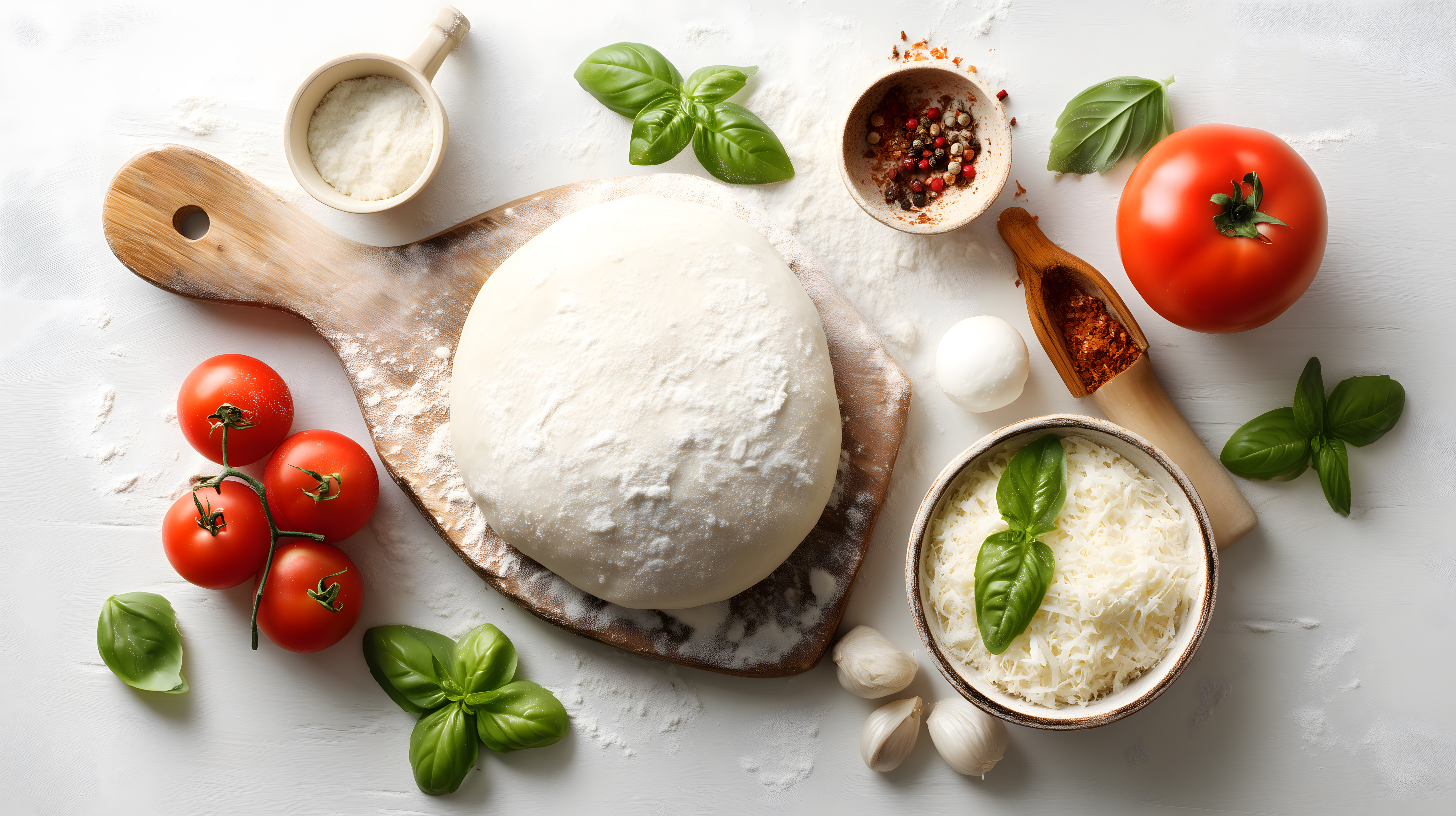 Dieses hochauflösende Stockfoto zeigt eine Nahaufnahme eines frischen Tomatensalats mit Basilikumblättern und Gewürzen auf einem rustikalen Holzbrett. Der Salat ist in einer ländlichen, mediterranen Küchenszenerie angeordnet, umgeben von Zutaten wie Knoblauchzehen, Mehl und Gewürzen. Das Bild strahlt Frische, Einfachheit und Authentizität aus und eignet sich hervorragend als Hintergrund für Rezepte, Kochblogs, Werbung für Lebensmittel oder italienische Restaurants. Dieses hochwertige, kostenlose Stockfoto unter Creative Commons-Lizenz kann in hoher Auflösung für Ihre digitalen oder gedruckten Projekte verwendet werden.