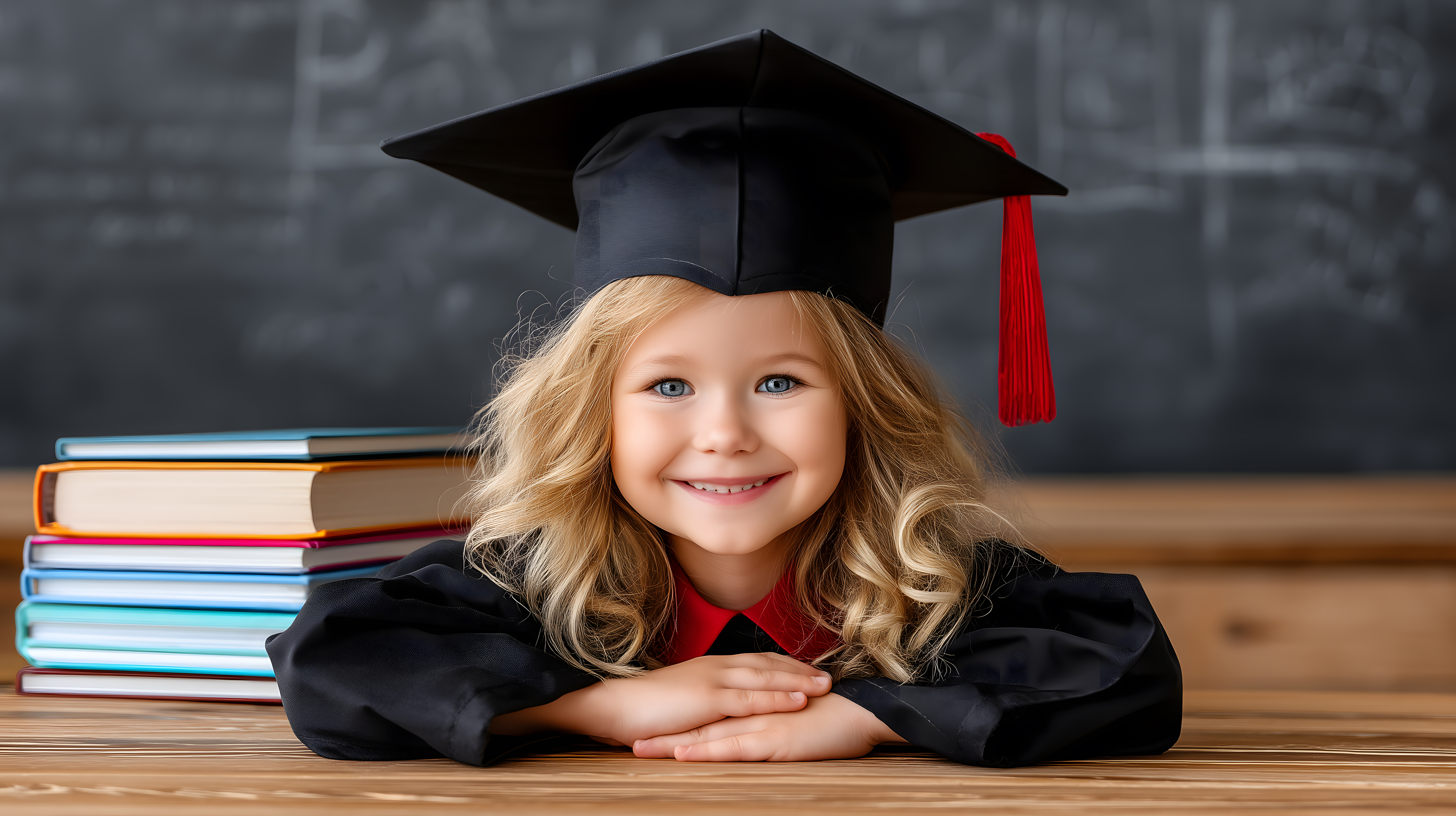 Dieses Foto zeigt ein glückliches, blondes Mädchen in einem Abschlusskleid, das lächelnd vor einer Kreidetafel sitzt und Bücher auf dem Tisch vor sich liegen hat. Das Mädchen wirkt zufrieden und stolz auf ihren Abschluss. Das Foto vermittelt eine positive, optimistische Stimmung und eignet sich hervorragend als kostenloses Stockfoto für Bildungsprojekte, Blogs, Social-Media-Posts oder Werbekampagnen rund um das Thema Lernen, Schule und Zukunft. Das hochauflösende Bild steht unter einer Creative-Commons-Lizenz zur freien Verwendung zur Verfügung.