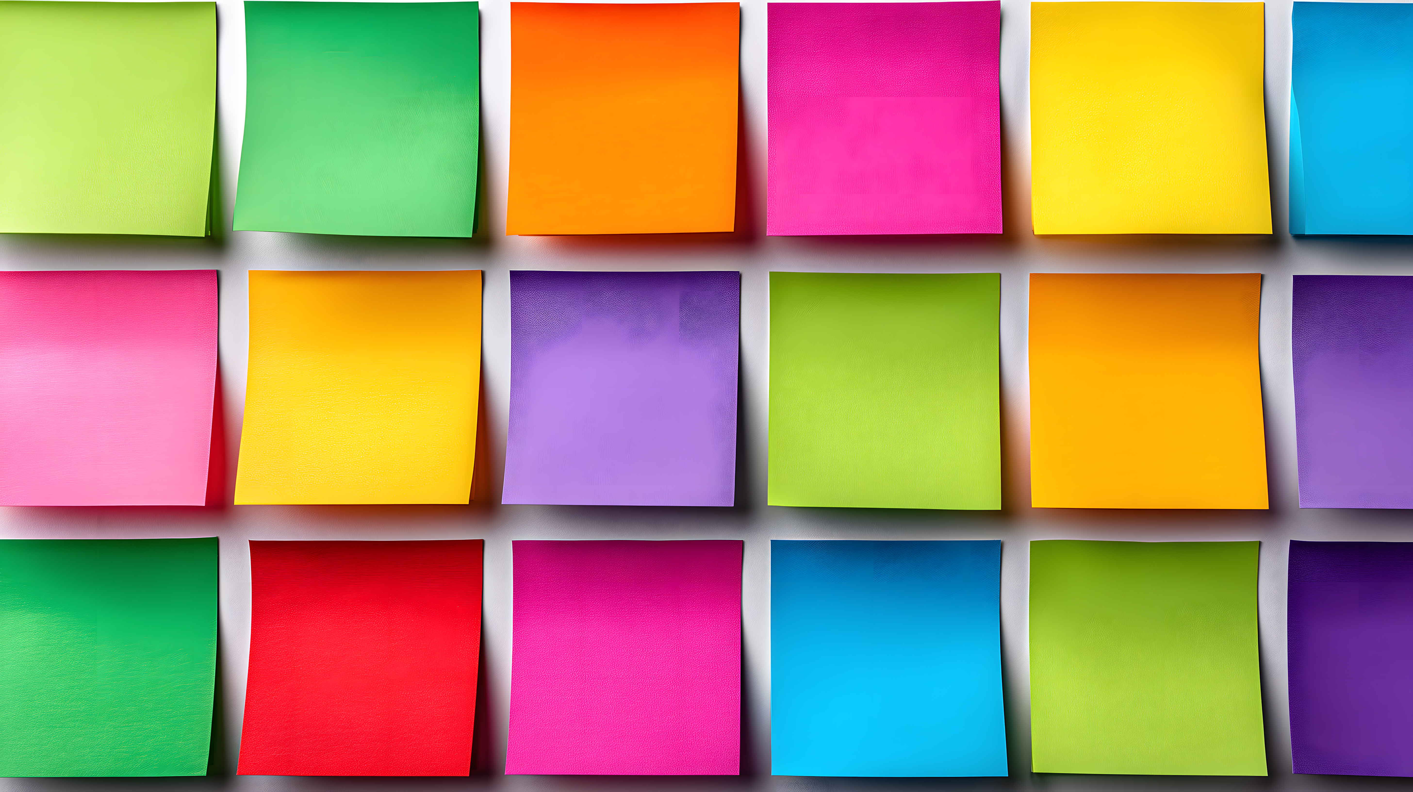 Dieses farbenfrohe Stockfoto zeigt eine Anordnung von bunten Haftnotizen an einer Wand. Die Notizzettel in Grün, Orange, Pink, Gelb, Lila und Blau sind in einer strukturierten, rasterartigen Komposition angeordnet und ergeben ein lebendiges, kreatives Moodboard. Das Bild eignet sich hervorragend für den Einsatz in Blogs, Social-Media-Kanälen, Newslettern und Werbemitteln, da es eine inspirierende und farbenfrohe Atmosphäre vermittelt. Dieses kostenlose Stockfoto in hoher Auflösung steht unter der Creative-Commons-Lizenz zur Verfügung.