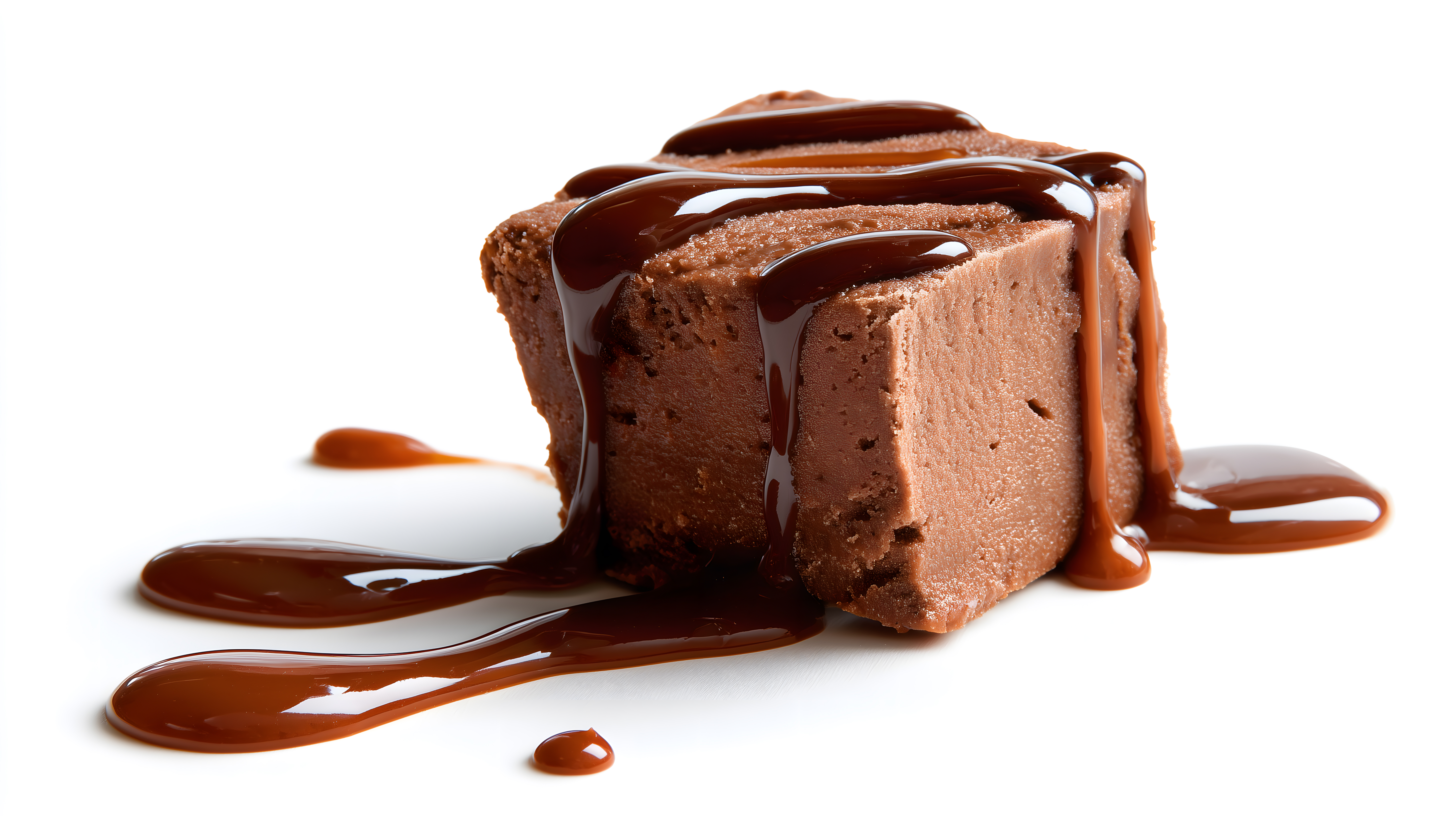 Dieses Foto zeigt einen köstlichen, schokoladigen Fudgekuchen, der mit einer glänzenden Karamellsoße überzogen ist. Der Kuchen hat eine satte, dunkelbraune Farbe und eine samtige Textur, die durch die Soße noch zusätzlich akzentuiert wird. Das Bild wurde vor einem weißen Hintergrund aufgenommen, wodurch der Fokus ganz auf dem Dessert liegt. Es eignet sich hervorragend als Stockfoto für Artikel, Blogs oder Social-Media-Posts rund um Backen, Süßspeisen und Lebensmittelfotos. Die hochauflösende Datei ist kostenfrei unter einer Creative-Commons-Lizenz verwendbar.