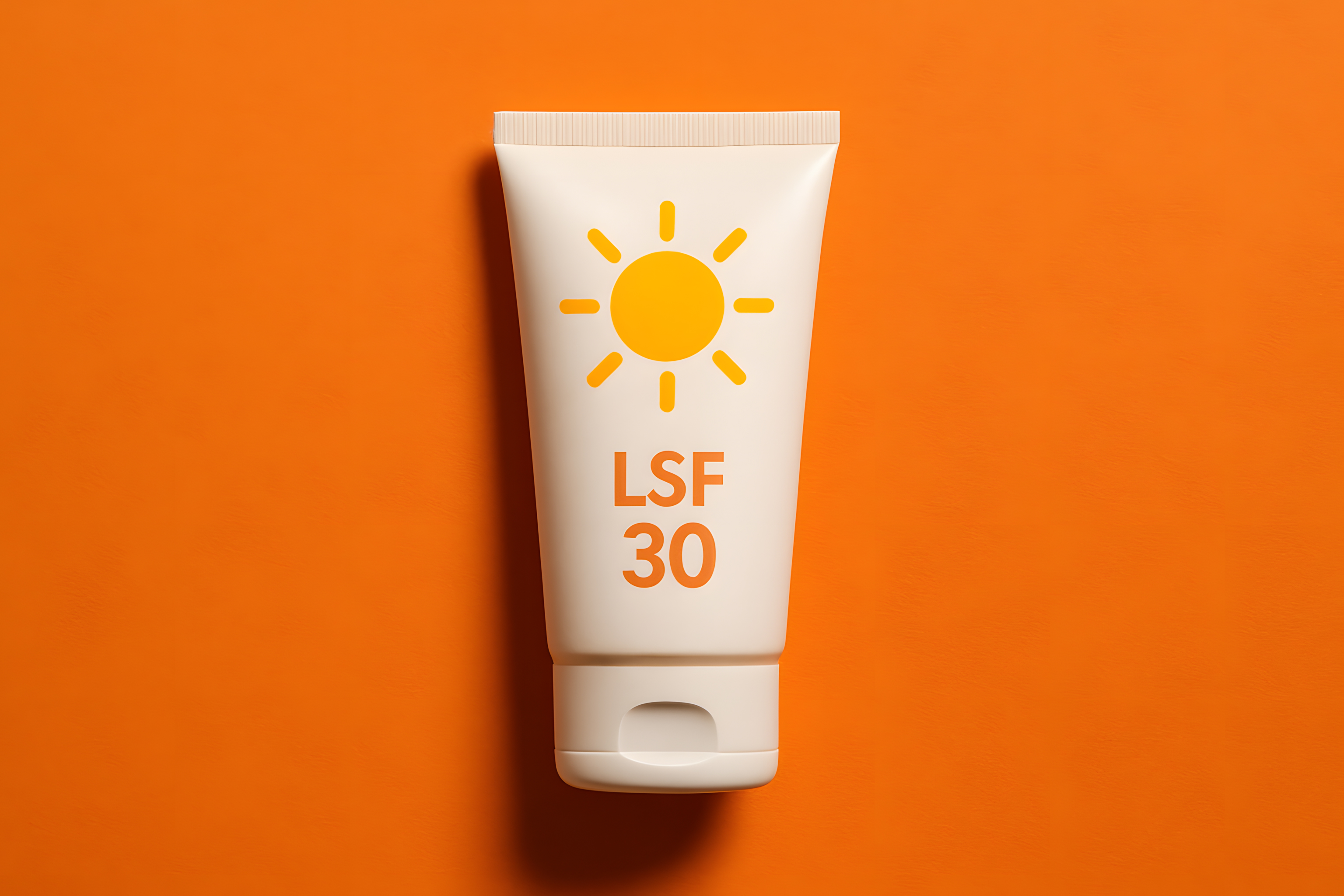 Die Aufnahme zeigt eine weiße Tube Sonnencreme mit einem kräftig orangefarbenen Hintergrund. Die Tube ist zentral platziert und hebt sich dadurch deutlich vom Hintergrund ab. Das Produktdesign ist schlicht und minimalistisch gehalten, mit einem gelben Sonnensymbol und der Angabe LSF 30 auf der Verpackung. Diese Produktfotografie eignet sich hervorragend für den Einsatz in Blogs, Newslettern, Social-Media-Beiträgen oder Werbekampagnen rund um Sonnenschutz, Hautpflege und Wellness-Themen. Das Bild vermittelt eine klare, reduzierte Ästhetik und lässt den Fokus ganz auf das Produkt selbst richten. Als hochauflösendes, kostenloses Stockfoto unter der Creative-Commons-Lizenz kann es frei verwendet werden.