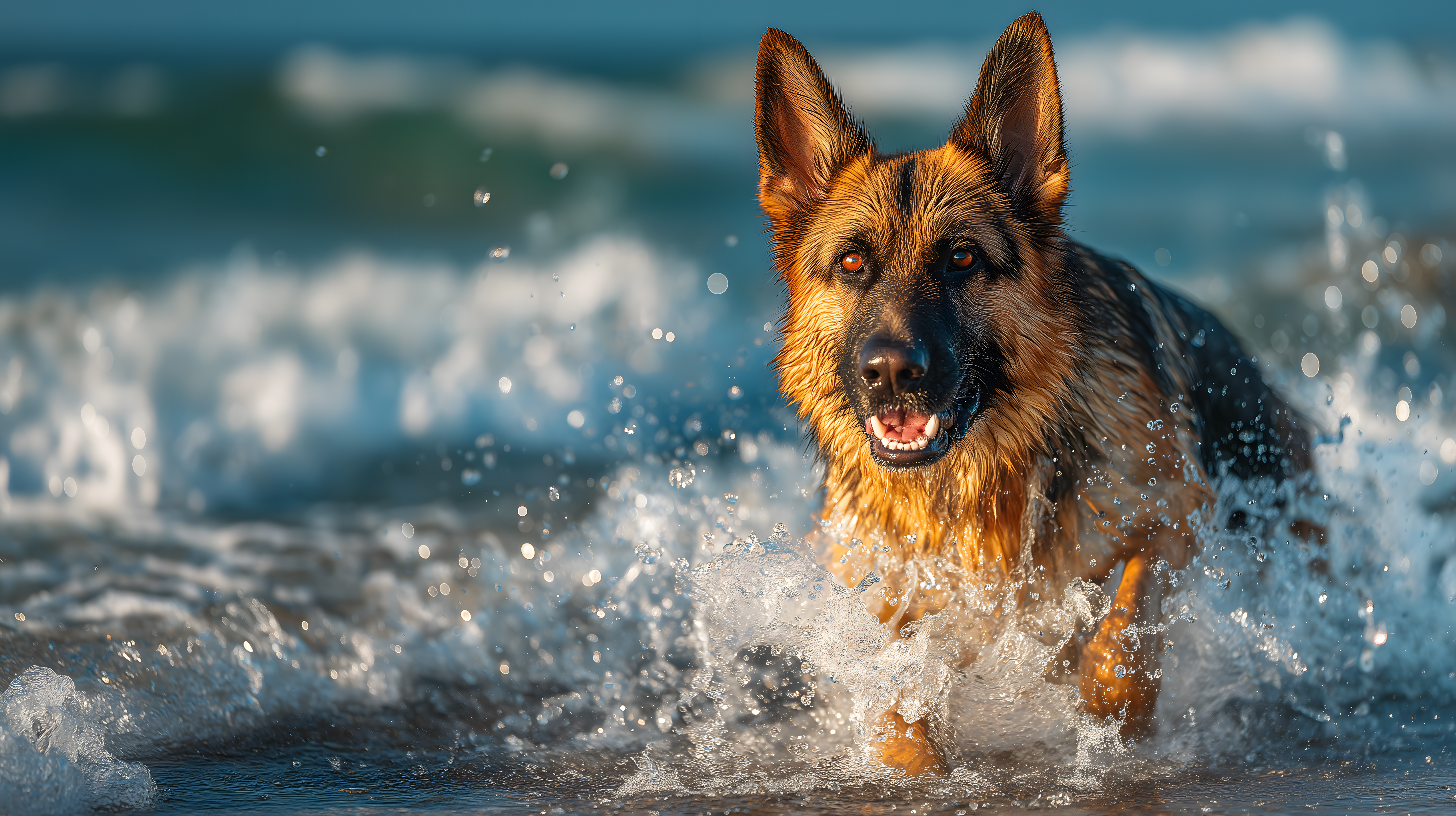 Das Foto zeigt einen lebendigen deutschen Schäferhund, der voller Energie durch die Meereswellen läuft. Der Hund ist in Aktion zu sehen, wie er sich durch das Wasser bewegt und Spritzer aufwirbelt. Die Dynamik und Freude, die in der Szene zu sehen sind, machen dieses Bild zu einem idealen Stockfoto für verschiedene Einsatzbereiche wie Blogs, Newsletter, Social Media-Beiträge oder Werbematerial. Die hohe Auflösung und die Creative-Commons-Lizenz ermöglichen eine flexible und kostengünstige Nutzung des Fotos.