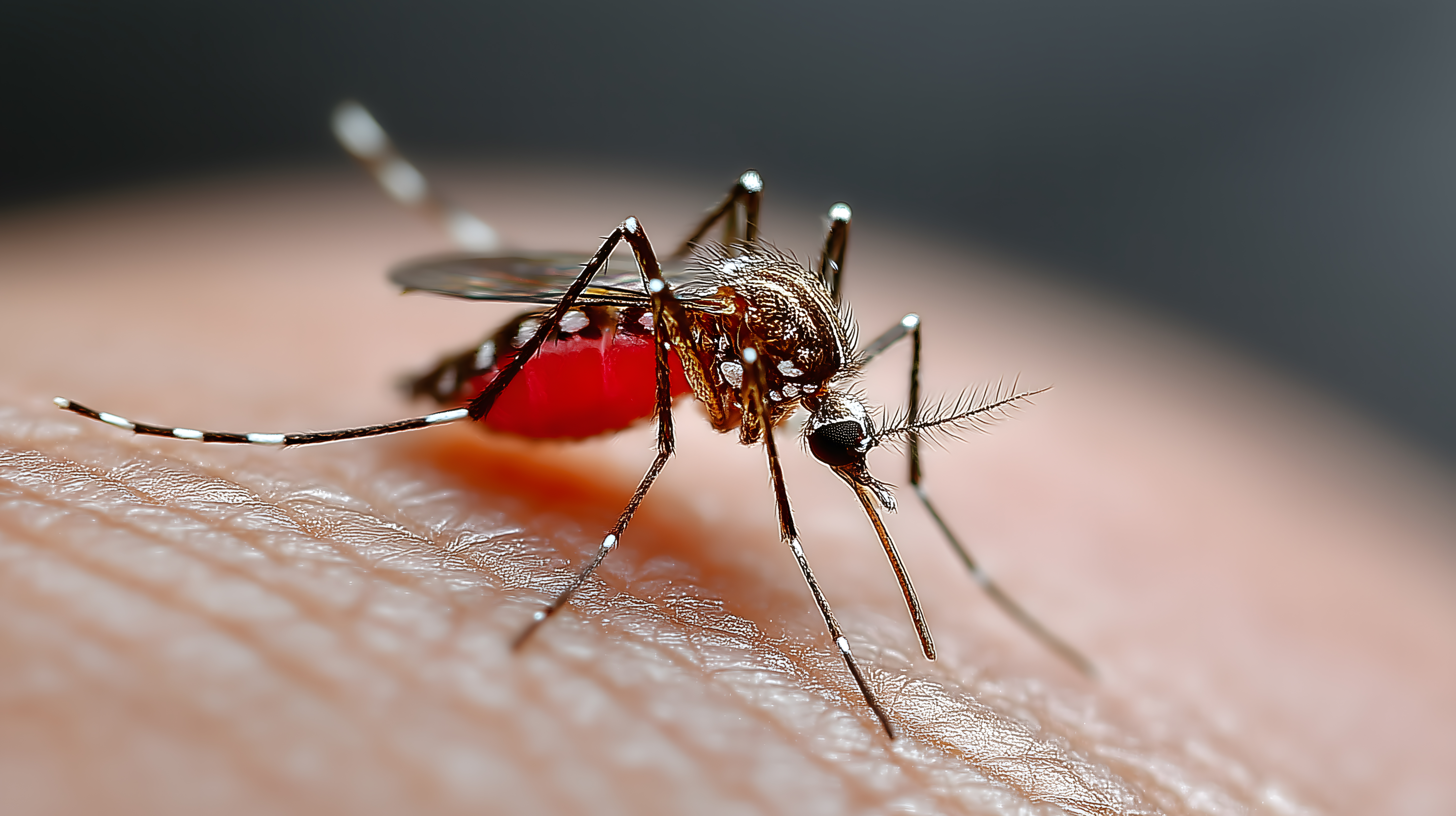 Das Bild zeigt eine detaillierte Nahaufnahme einer roten Mücke, die auf der menschlichen Haut zu sehen ist. Die Mücke hat einen auffällig langen, saugenden Rüssel und ihre Augen sowie Beine sind deutlich erkennbar. Die Perspektive lässt die Strukturen der Haut und die feine Behaarung sichtbar werden. Dieses Stockfoto eignet sich hervorragend für Blogs, Newsletter oder Social-Media-Posts rund um Themen wie Schädlinge, Biologie, Mikroskopie oder Fotografie. Die hochauflösende Aufnahme ist unter einer Creative-Commons-Lizenz verfügbar und kann für kommerzielle und redaktionelle Zwecke kostenfrei genutzt werden.