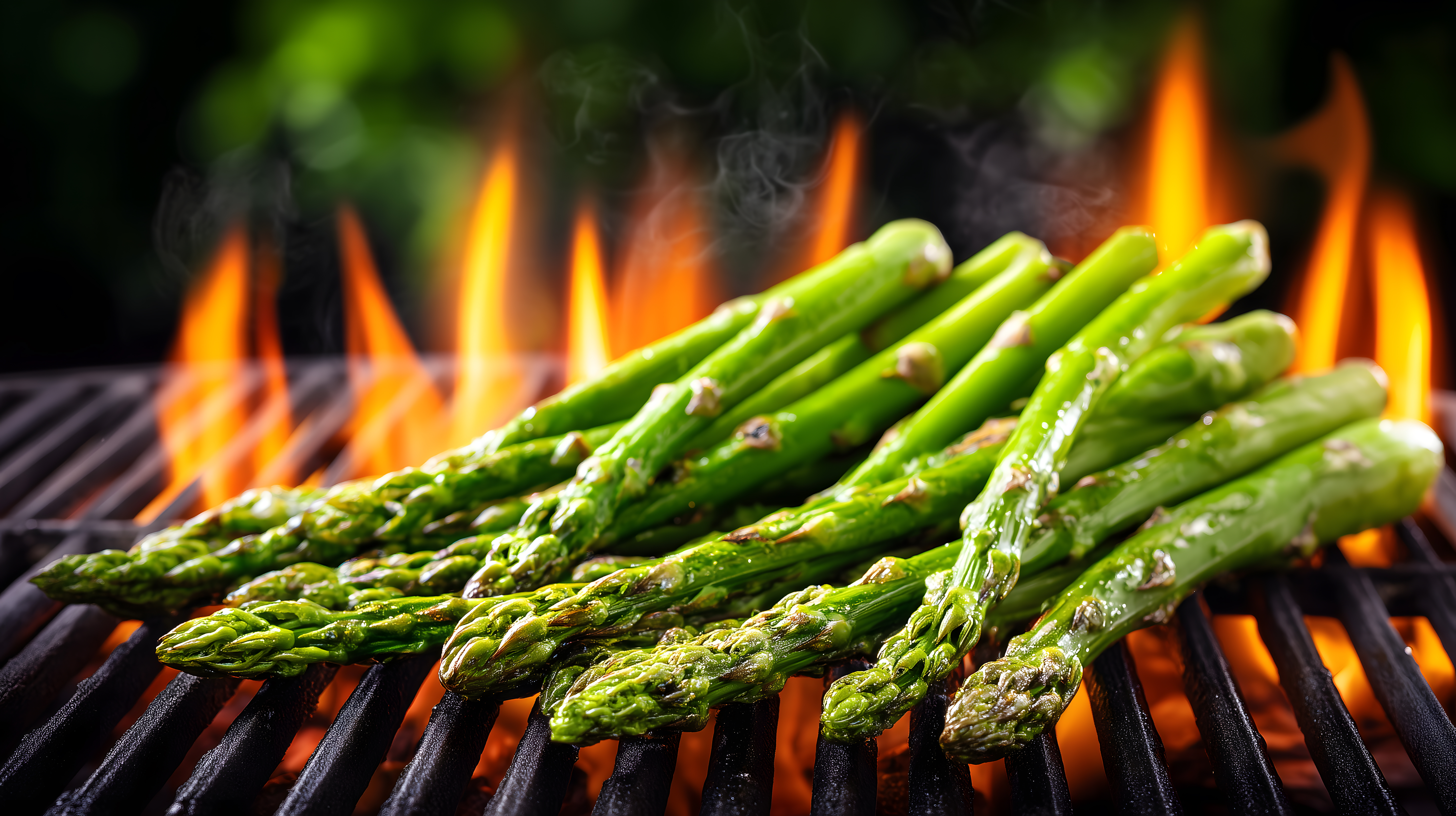 Dieses eindrucksvolle Foto zeigt appetitlich aussehende, frische Spargelstangen, die über einem offenen Feuer gegrillt werden. Die knisternden Flammen und der aufsteigende Rauch erzeugen eine rustikale, gemütliche Atmosphäre. Die kräftig grüne Farbe des Spargels hebt sich wirkungsvoll von den orangefarbenen Flammen ab. Dieses Bild eignet sich hervorragend für Rezepte, Foodblogs, Kochbücher oder Werbematerialien rund um Grill- und Sommerküche. Als hochwertiges, kostenloses Stockfoto in hoher Auflösung unter Creative-Commons-Lizenz kann es vielfältig eingesetzt werden.