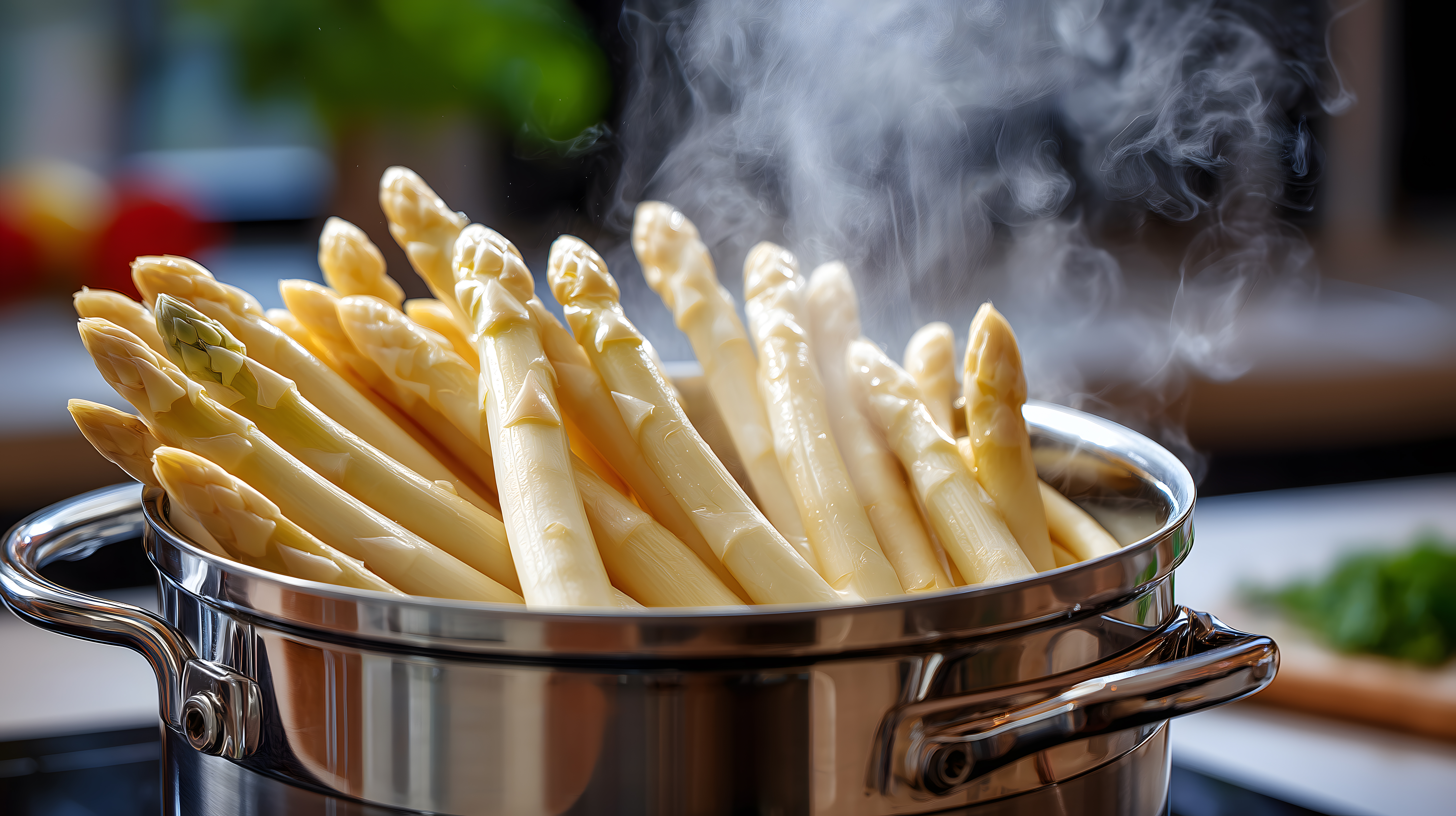 Dieses Foto zeigt dampfende Spargelstangen, die in einem glänzenden Edelstahltopf auf dem Herd gekocht werden. Die gelben, langen Spargelstangen sind perfekt für ein leckeres, frisches Gericht. Der Dampf, der aus dem Topf aufsteigt, unterstreicht den Kochvorgang und verleiht dem Bild eine appetitanregende Atmosphäre. Das Foto eignet sich hervorragend als kostenloses Stockfoto für Blog-Beiträge, Newsletter, Werbung oder Social-Media-Kanäle rund um die Themen Kochen, Ernährung, Gesundheit oder Gourmetküche. Die hohe Auflösung und Creative-Commons-Lizenz machen es zu einem vielseitig einsetzbaren Bildmaterial.