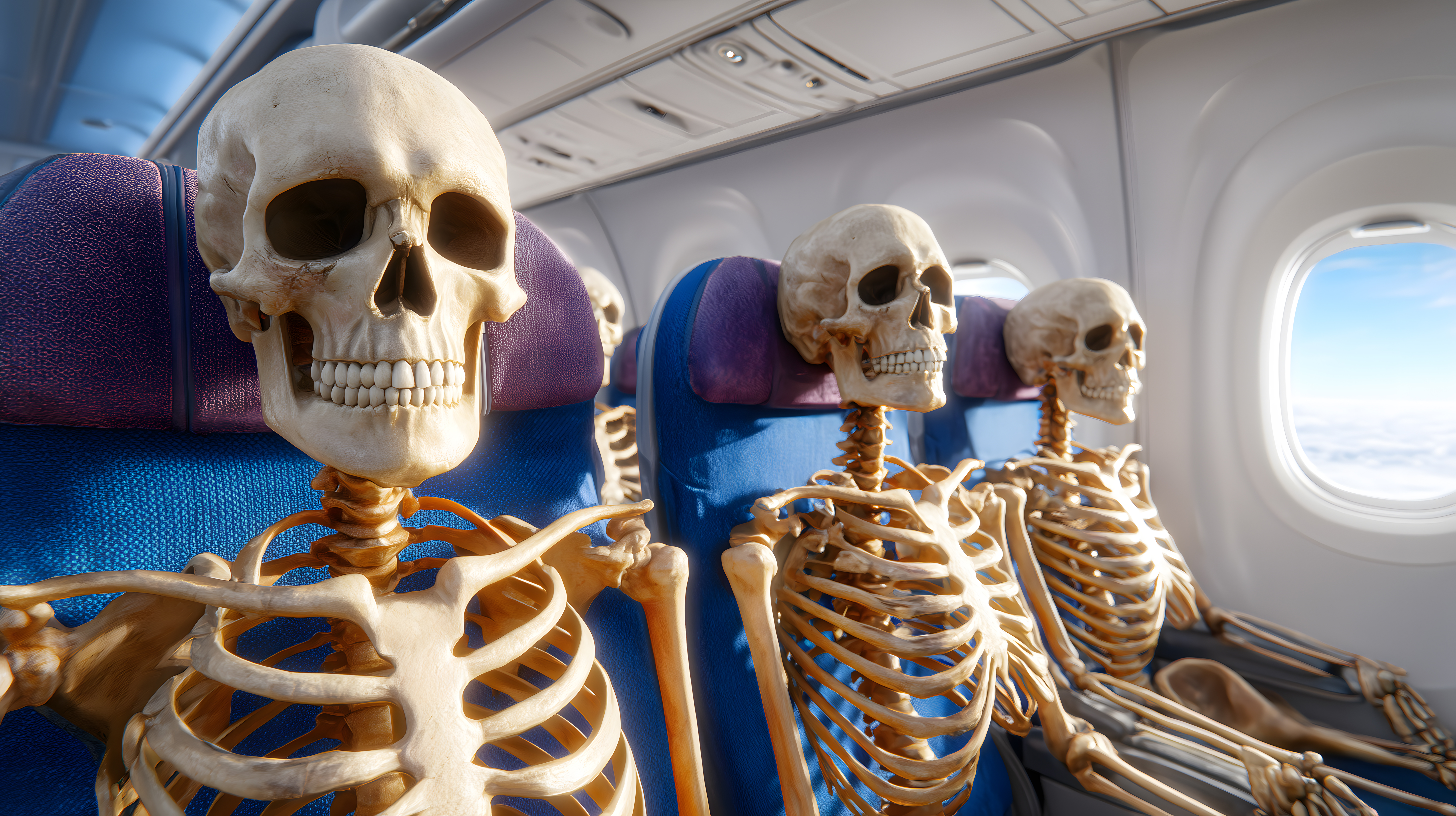 Skelette in Flugzeugsitzen - surreale Reiseillustration von Marco Verch unter Creative Commons 2.0