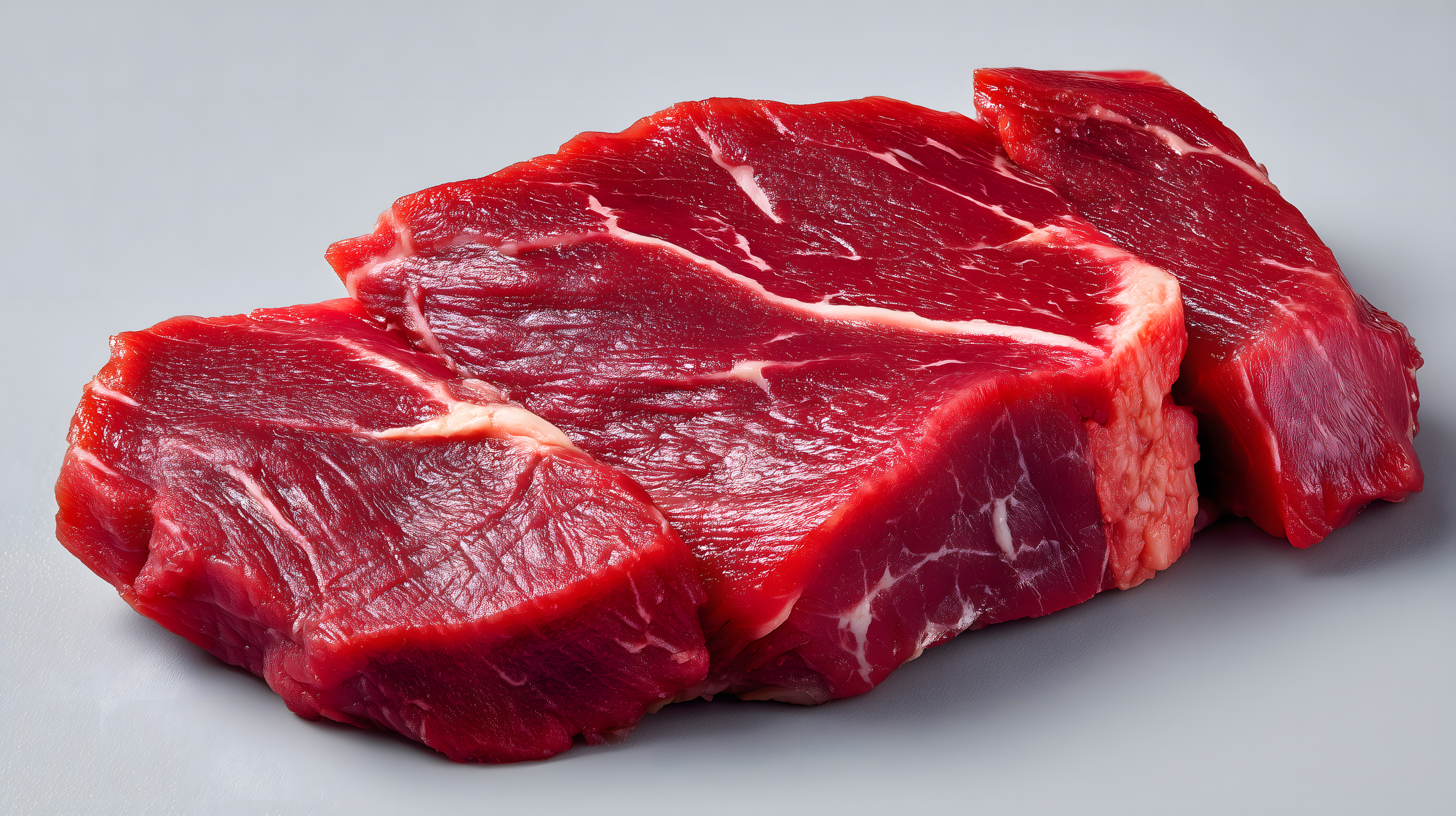 Dieses Foto zeigt eine Nahaufnahme von frischem, rotem Rindfleisch auf einem grauen Hintergrund. Das saftige Fleisch hat eine intensive rote Farbe und eine lebendige, strukturierte Textur, die auf seine Frische und Qualität hinweist. Das Bild lässt sich hervorragend für Rezepte, Kochbücher, Lebensmittelwerbung oder Foodblogs verwenden. Es ist ein hochwertiges, kostenloses Stockfoto, das unter Creative-Commons-Lizenz veröffentlicht wurde und in voller Auflösung heruntergeladen werden kann.