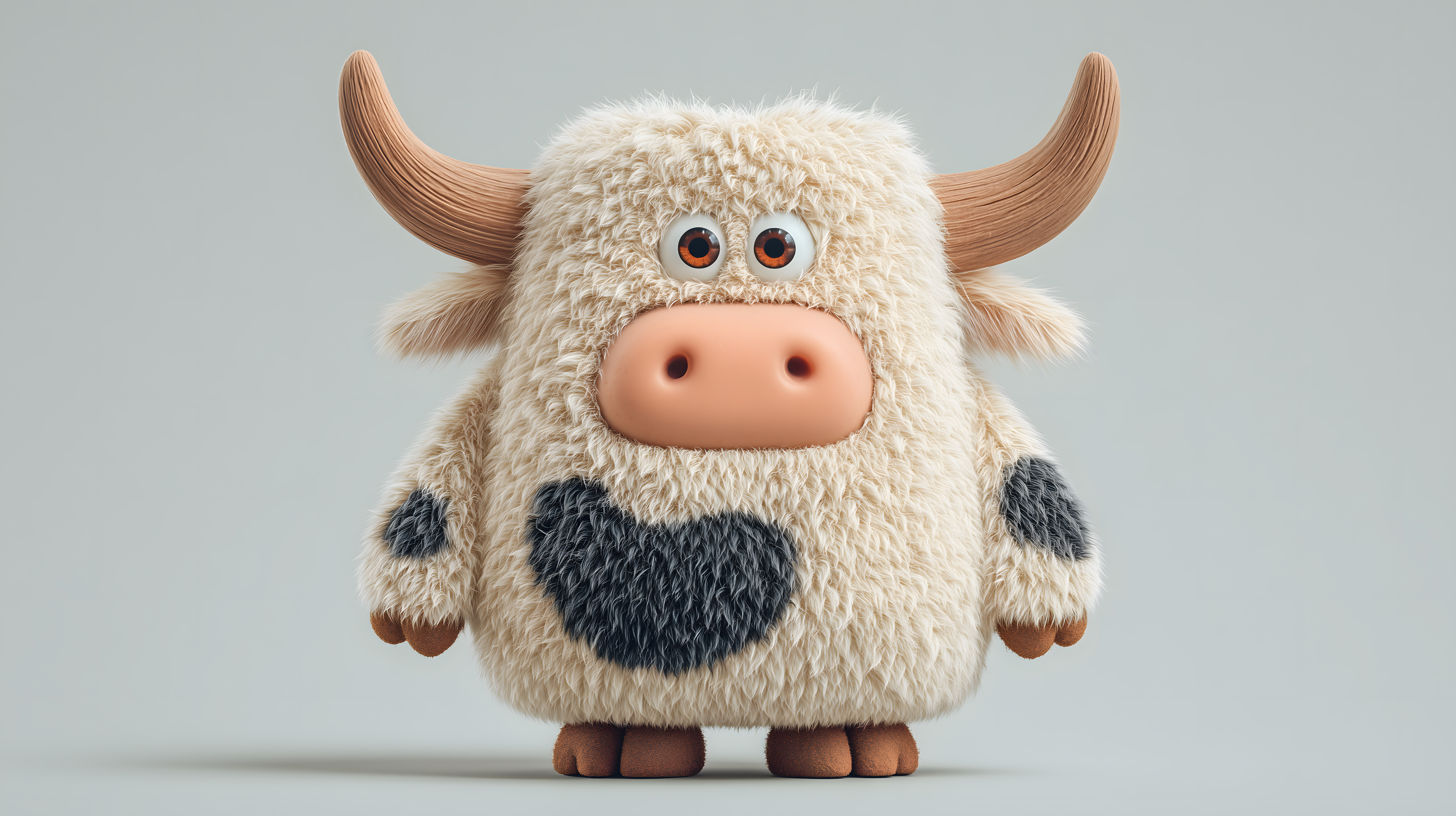 Dieses faszinierende Bild zeigt eine niedliche, flauschige Cartoon-Kuh mit großen, ausdrucksstarken Augen in einem pastellfarbenen Look. Die detailreiche, 3D-Grafik im Pixar-Stil verleiht der Kuh eine geradezu lebendige und süße Ausstrahlung. Diese einzigartige Illustration wäre perfekt für den Einsatz in Kinderbüchern, auf Kinder-Merchandise, in Werbungen oder als Gestaltungselement in Grafiken und Illustrationen. Als kostenloses Stockfoto in hoher Auflösung und unter einer Creative-Commons-Lizenz steht dieses Bild vielfältig nutzbar zur Verfügung.