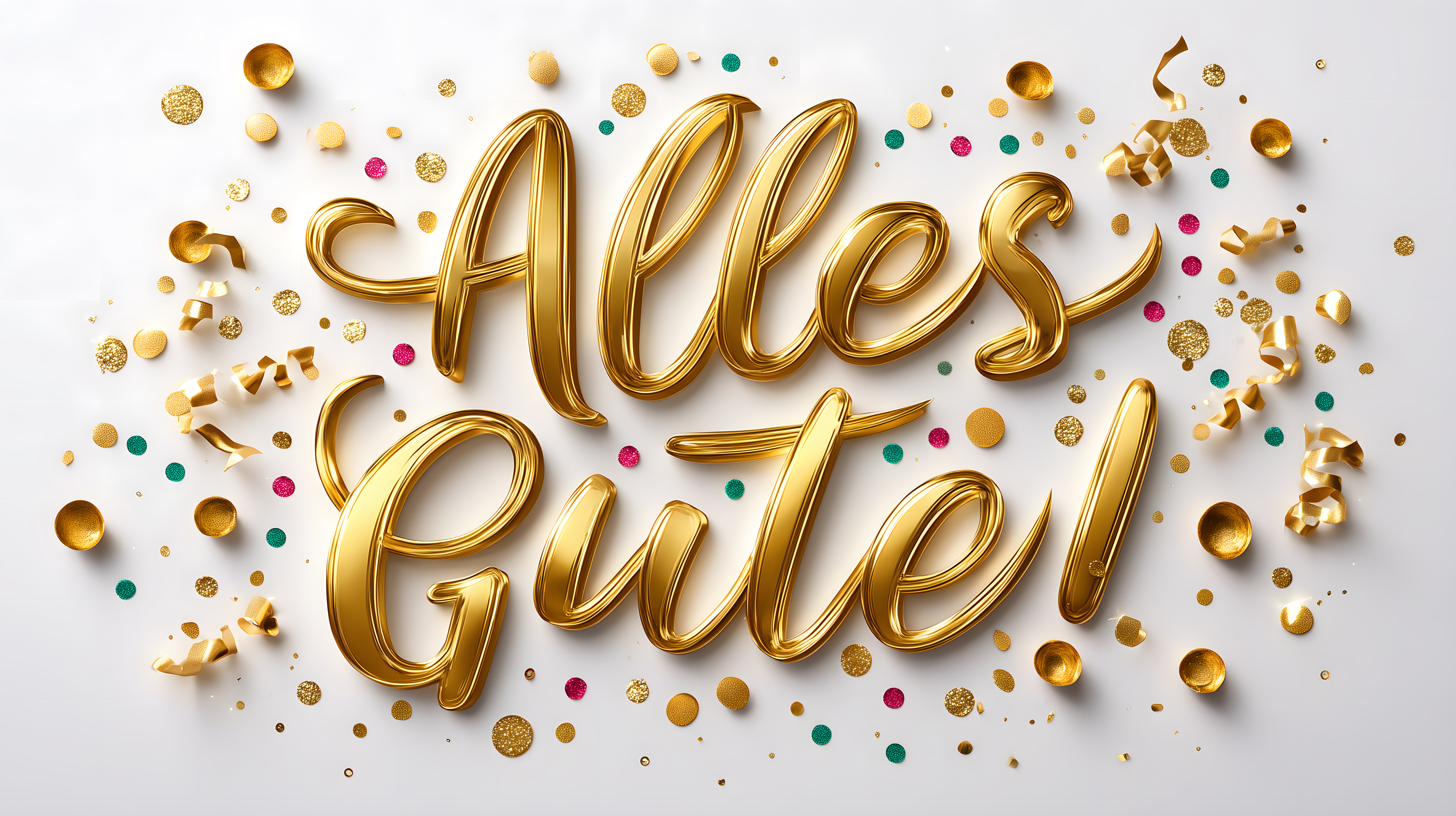 Goldener Schriftzug 'Alles Gute' mit Konfetti-Dekor von Marco Verch unter Creative Commons 2.0