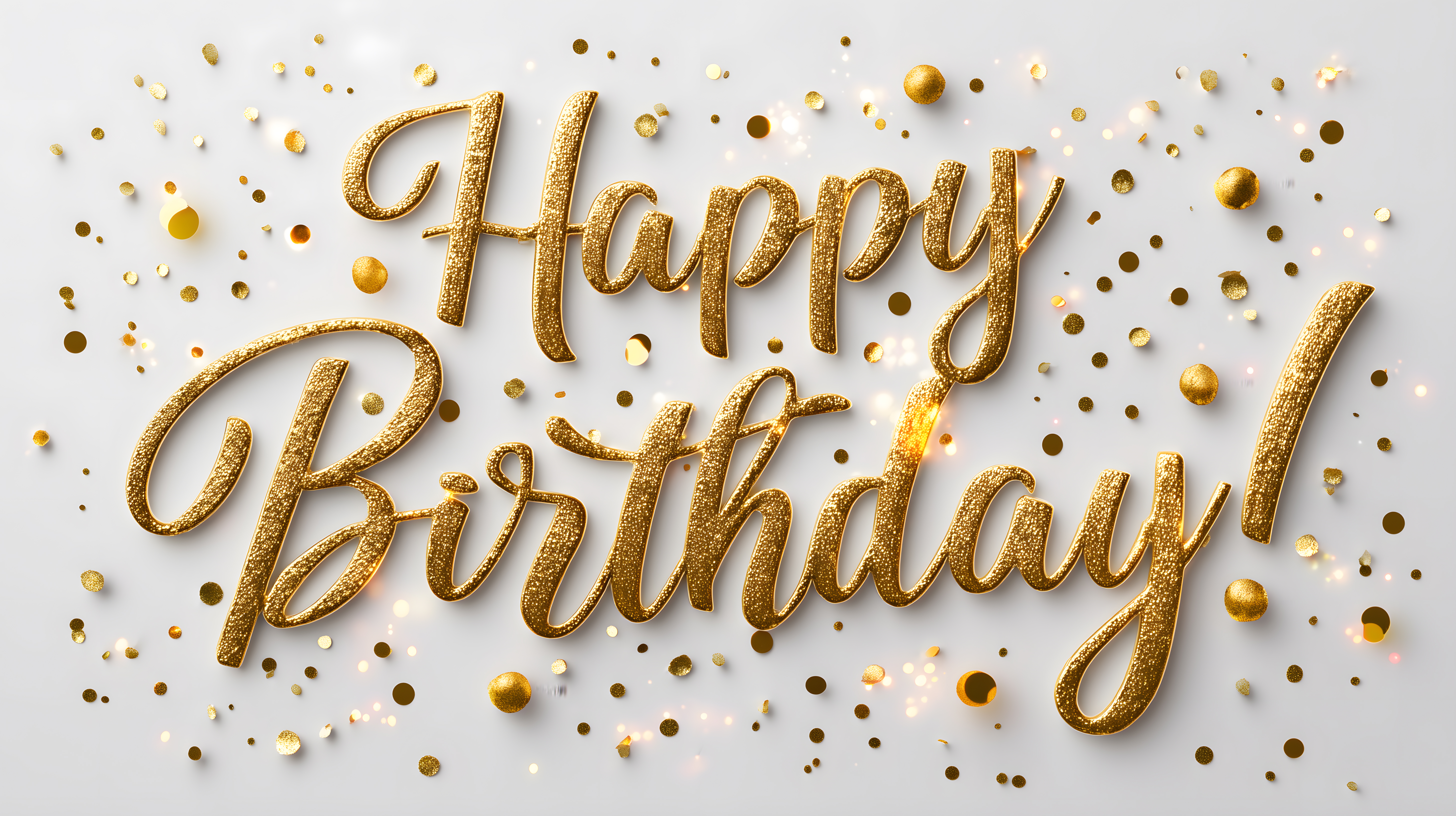 Dieses farbenfrohe Stockfoto zeigt eine goldfarbene, glitzernde 'Happy Birthday'-Schrift vor einem hellen Hintergrund mit golden glänzenden Konfetti-Elementen. Das Bild strahlt eine festliche und feierliche Atmosphäre aus und eignet sich hervorragend für Geburtstags-Grußkarten, Einladungen, Newsletter oder Werbemittel in den Bereichen Feier, Celebration und Glückwünsche. Das hochauflösende Foto ist unter einer Creative-Commons-Lizenz frei verfügbar und kann kostenlos für verschiedene kommerzielle und private Zwecke genutzt werden.