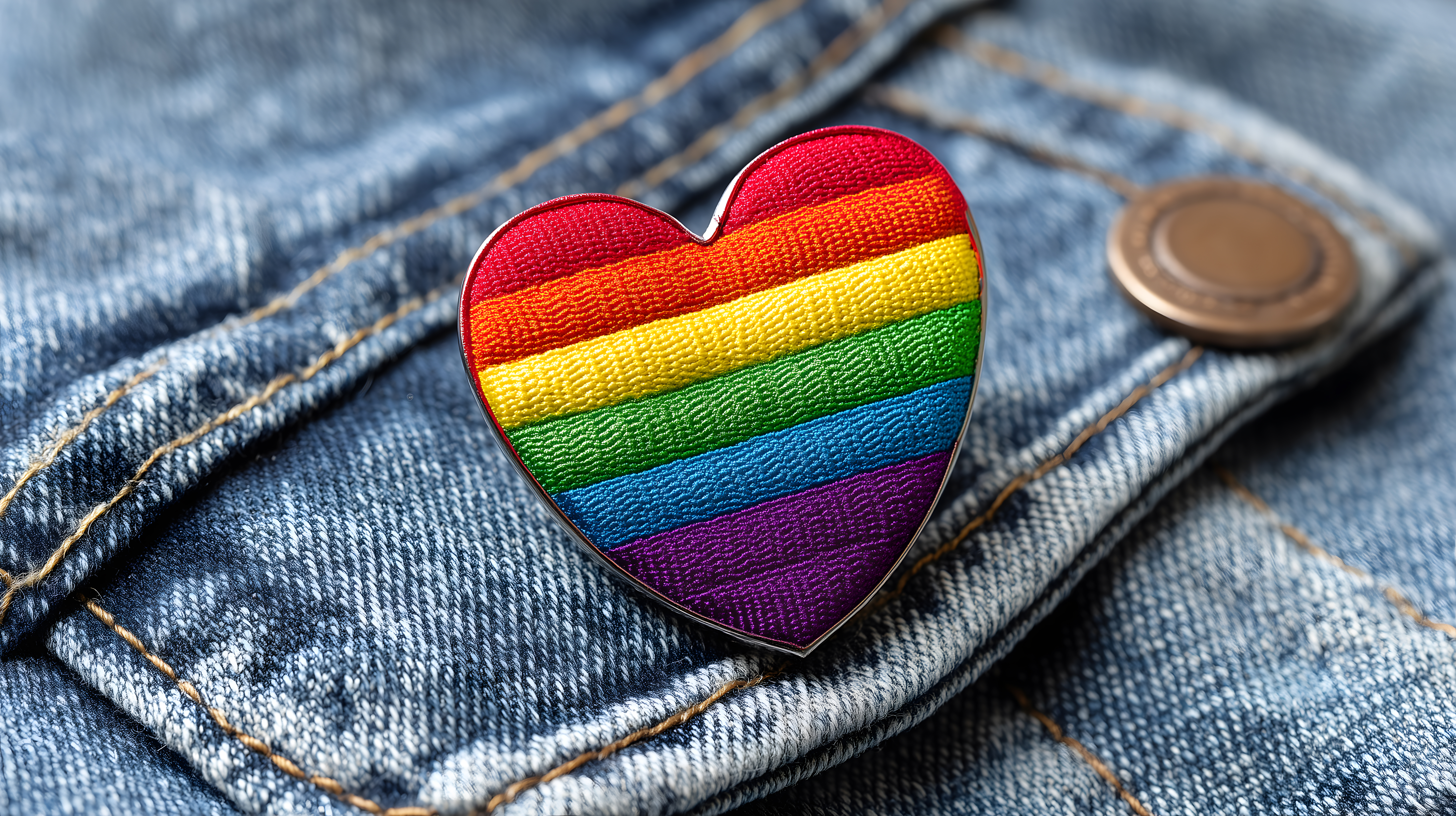 Das Bild zeigt ein buntes, regenbogenfarbenes Herz-Symbol als Anstecker oder Pin auf einem Hintergrund aus Jeansstoff. Das Symbol steht als sichtbares Zeichen für die LGBTQ+-Community und deren Stolz, Selbstakzeptanz und Inklusion. Die detailreiche Nahaufnahme legt den Fokus auf die lebendigen Farben und die strukturierte Textur des Jeansgewebes. Dieses Stockfoto eignet sich hervorragend für Blogbeiträge, Newsletter-Designs, Social-Media-Grafiken und andere visuelle Kommunikation rund um Themen wie Vielfalt, Gleichberechtigung und gesellschaftlichen Wandel. Das Foto ist in hoher Auflösung und unter einer Creative-Commons-Lizenz frei verfügbar.