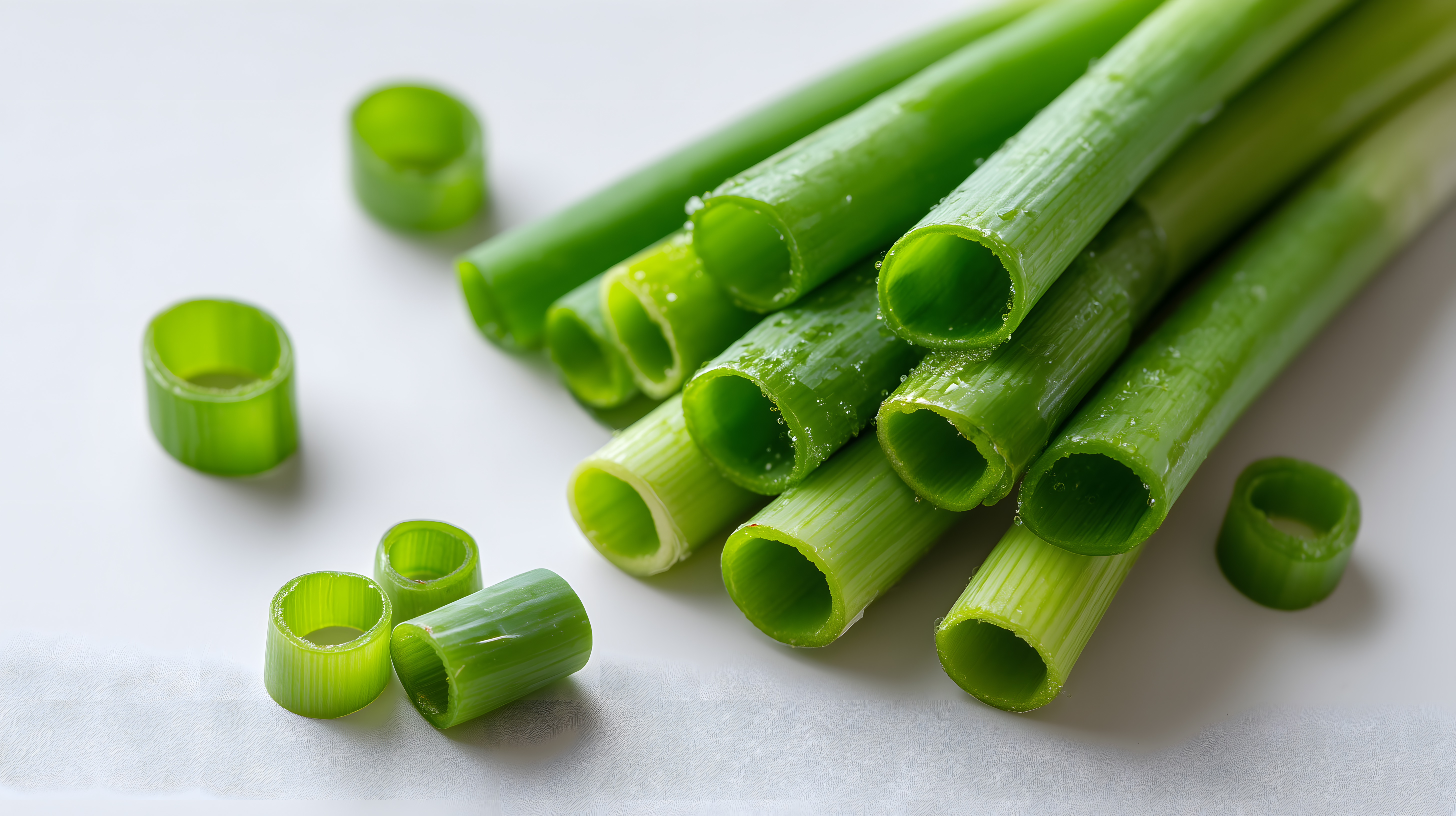 Dieses Stockfoto zeigt eine Draufsicht auf frische, knackige Frühlingslauchstangen auf einem weißen Hintergrund. Die leuchtend grünen, langen Stangen sind leicht versetzt angeordnet und sorgen für einen natürlichen, appetitlichen Look. Das Bild eignet sich perfekt als Titelbild für Rezeptblogbeiträge, Newsletter-Kampagnen oder Social-Media-Posts rund um Frühlingsgemüse, gesunde Ernährung und leichte Küche. Mit seiner hohen Auflösung und dem freien Creative-Commons-Nutzungsrecht ist das Foto kostenlos für verschiedenste kommerzielle und redaktionelle Zwecke einsetzbar.