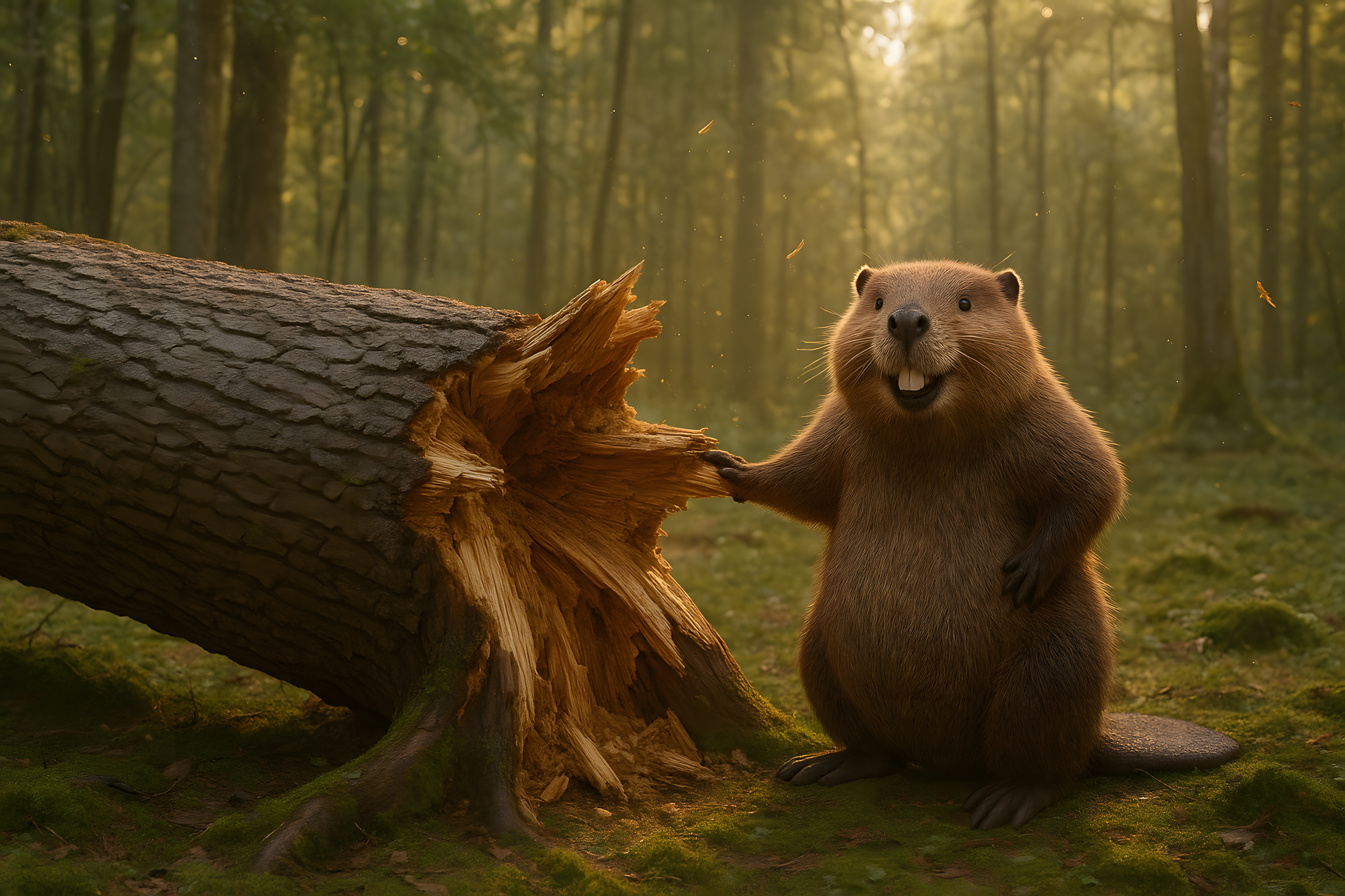 Dieses bezaubernde Bild zeigt einen Biber, der gerade damit beschäftigt ist, einen Baumstamm zu bearbeiten. Die Szenerie spielt sich in einem sonnendurchfluteten, grünen Waldstück ab, wo der Nager seelenruhig an seinem Werk sitzt. Das warme, goldene Licht, das durch die Bäume fällt, verleiht der Szene eine stimmungsvolle, fast märchenhafte Atmosphäre. Der Biber selbst wirkt sehr friedlich und konzentriert, wie er sich an seinem Holzwerk zu schaffen macht. Dieses kostenlose Stockfoto in hoher Auflösung eignet sich hervorragend für den Einsatz in Blogs, Newslettern oder sozialen Medien, wo es eine natürliche, naturnahe Stimmung vermitteln kann. Es steht unter einer Creative-Commons-Lizenz zur Verfügung.