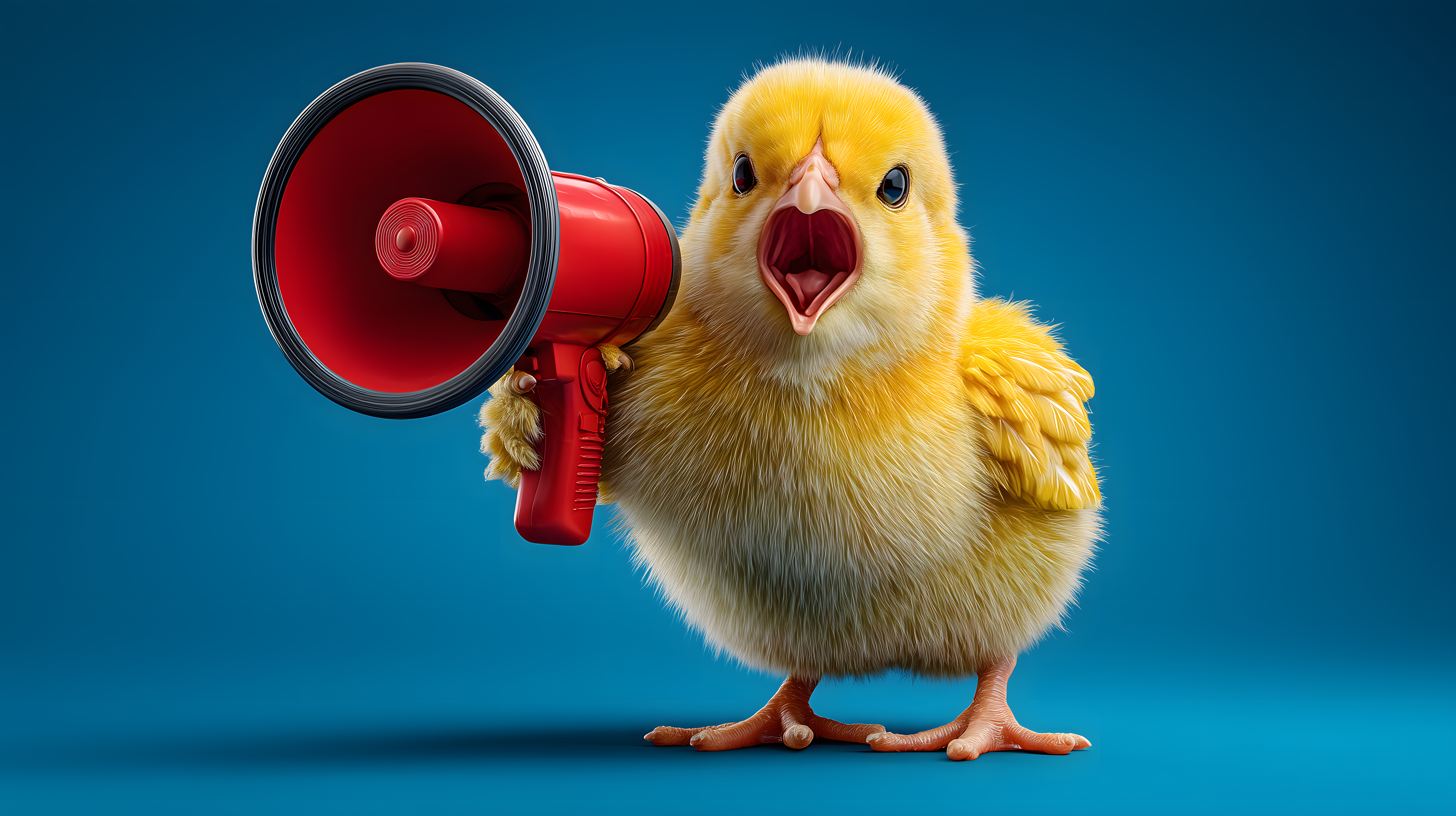 Das Bild zeigt ein gelbes Küken, das mit weit aufgerissenem Schnabel durch ein rotes Megafon ruft. Der Kontrast zwischen dem niedlichen Tierchen und dem technischen Hilfsmittel erzeugt einen überraschenden und humorvollen Effekt. Vor einem intensiv blauen Hintergrund hebt sich das Küken klar ab und lenkt die volle Aufmerksamkeit auf sich. Dieses Foto eignet sich hervorragend für den Einsatz in Blogs, Newslettern, Werbematerialien und auf Social Media-Kanälen, um Aufmerksamkeit zu erregen und Inhalte zu bereichern. Als hochauflösendes, kostenloses Stockfoto unter Creative-Commons-Lizenz ist es frei verwendbar.
