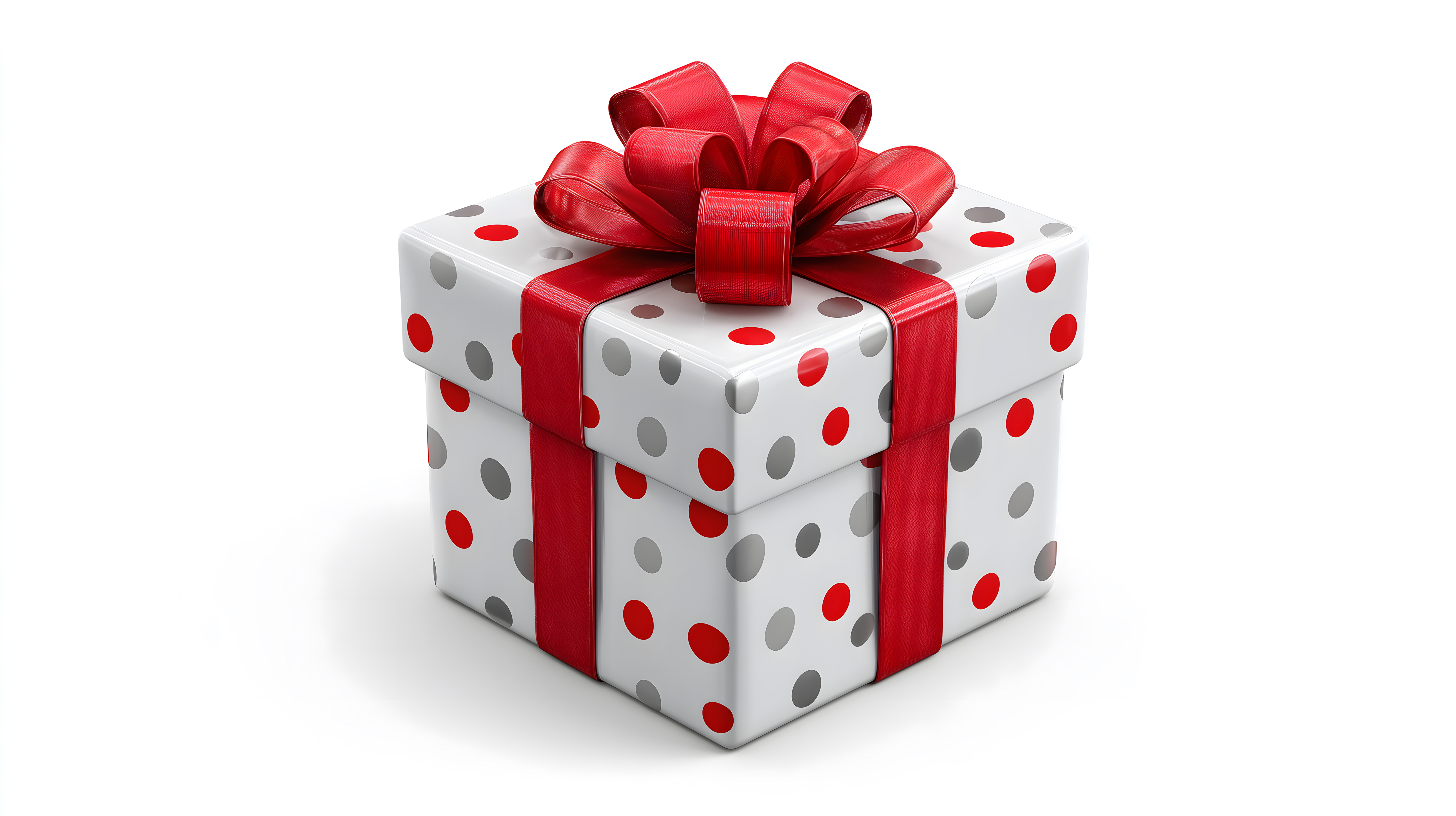 Das Bild zeigt eine dekorativ verpackte Geschenkbox mit einem Punktmuster in Grau und Rot sowie einer roten Schleife als Zierde. Die Perspektive ist frontal und die Box ist vor einem weißen Hintergrund platziert, wodurch die Farben und das Muster besonders gut zur Geltung kommen. Das Foto eignet sich hervorragend als Hintergrund oder Gestaltungselement für Blogs, Newsletter, Social-Media-Beiträge oder Werbematerialien rund um Feste, Feiern und Geschenke. Das hochaufgelöste Stockfoto ist unter einer Creative-Commons-Lizenz verfügbar und kann kostenfrei genutzt werden.